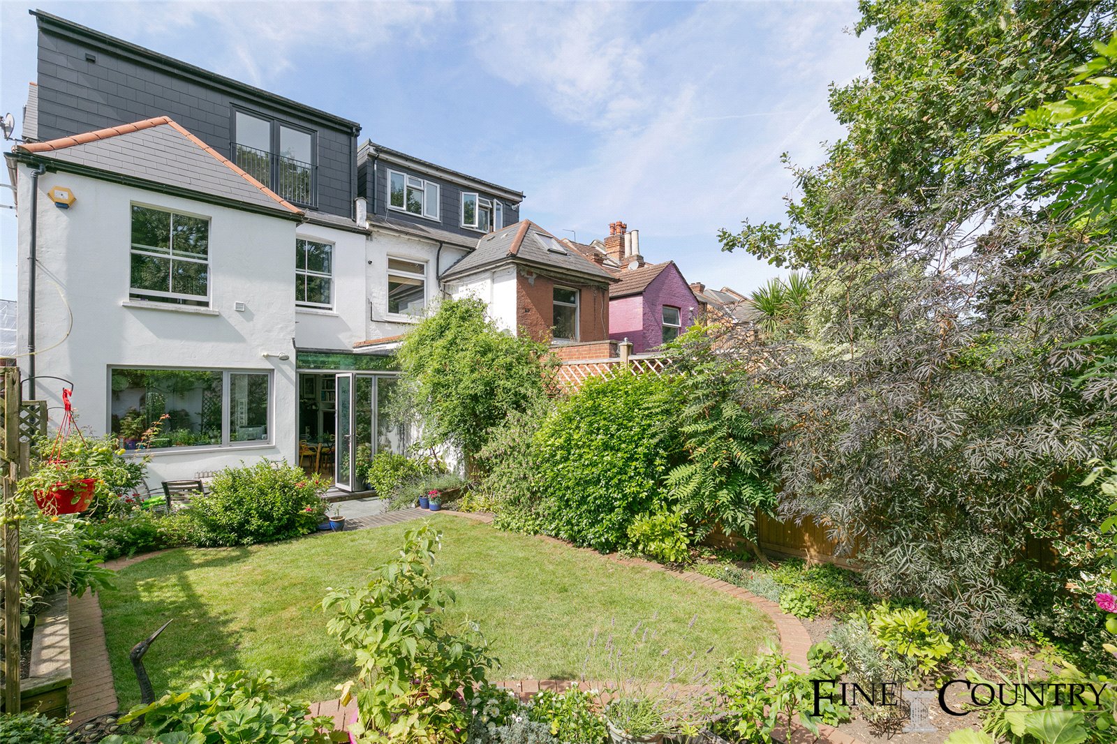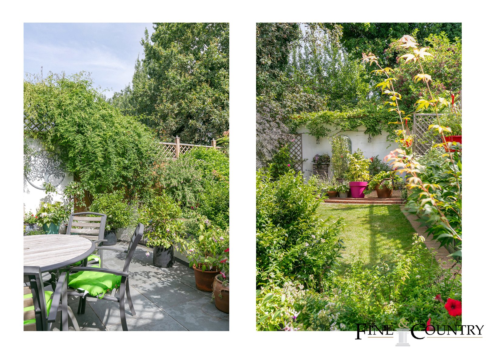 The garden extends roughly 40ft by 60ft, offering a lush oasis within the urban landscape. Primarily laid to grass, it includes a large slate-tiled patio directly adjacent to the house, perfect for entertaining and al fresco dining. Towards the rear, a secondary patio crafted with red brick provides additional space for relaxation and gatherings. The garden's layout is enhanced by a small, raised vegetable plot, inviting a touch of home-grown produce into urban living. Ensuring considerable privacy, the garden is surrounded by newly replaced 2-meter-high wooden fencing and a robust rendered wall at the back. During the summer, a lush canopy of trees provides a secluded atmosphere, while a small metal shed serves as practical storage for garden tools. Access is secure through a narrow side passage. Additionally, there's potential to add a garden room, expanding or customising the space for extra leisure or practical purposes.
