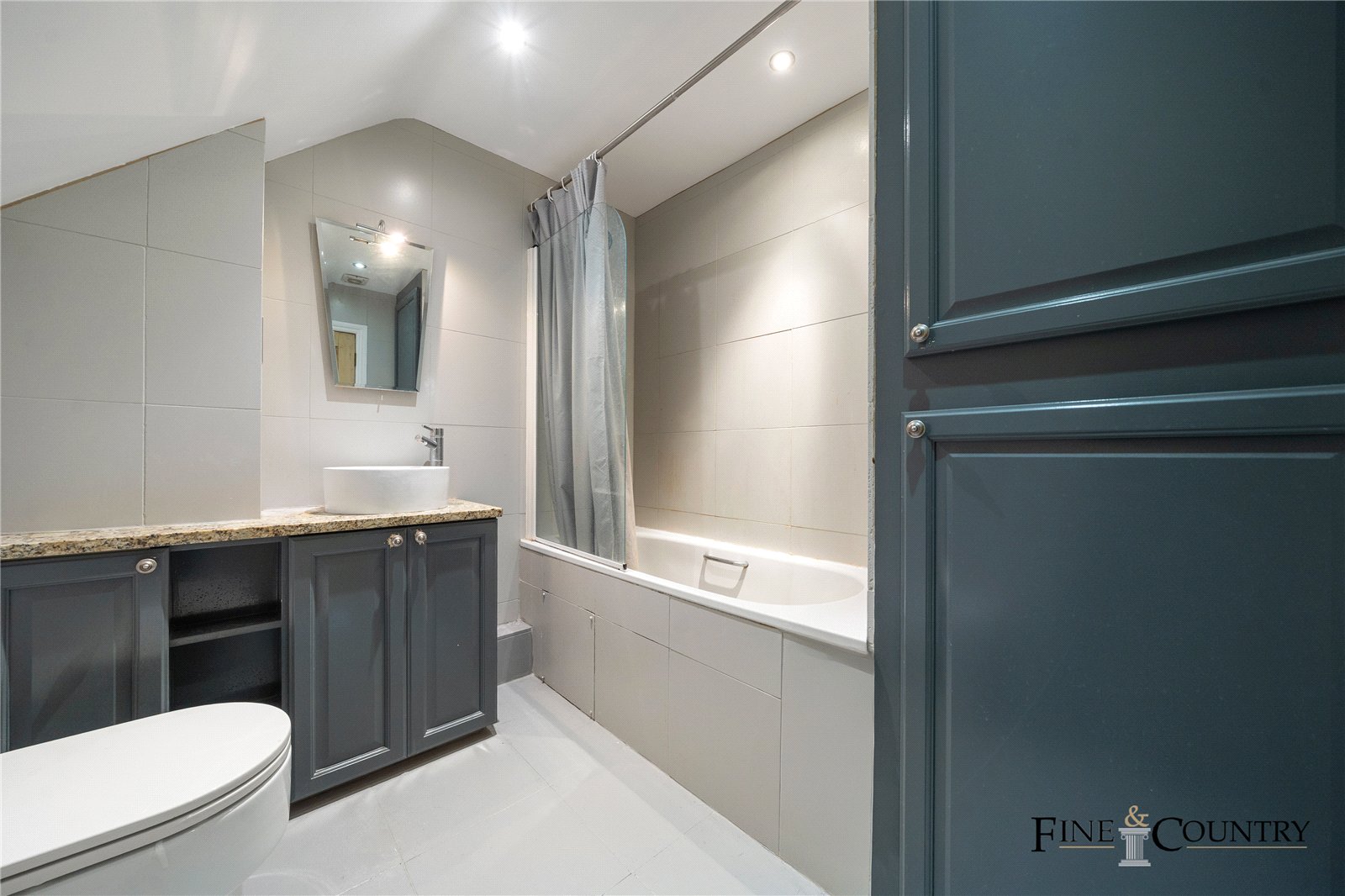 The top floor has been converted into a spacious fifth bedroom with vaulted ceilings, fitted storage, and a stylish en-suite bathroom. Skylights and mirrored wardrobes make this a bright, versatile space suited to a bedroom, studio or guest suite.