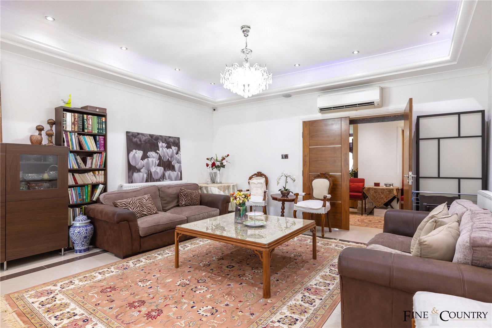 The ground floor of the property is thoughtfully arranged to maximize comfort and luxury. It features a large reception/dining room, adorned with beautiful hardwood flooring and expansive windows that imbue the space with abundant natural light, enhancing the opulent decor. This room offers flexible living options, making it perfect for both formal and casual gatherings. Additionally, a separate study (which can be used as a bedroom) provides a quiet retreat, ideal for work or reading. Adjacent, a family bathroom is available, serving both functional and accessibility needs. To further accommodate guests or family, there is a downstairs bedroom complete with an en-suite bathroom, ensuring privacy and convenience. A guest WC is also strategically located on this level to cater to visitors and residents alike.