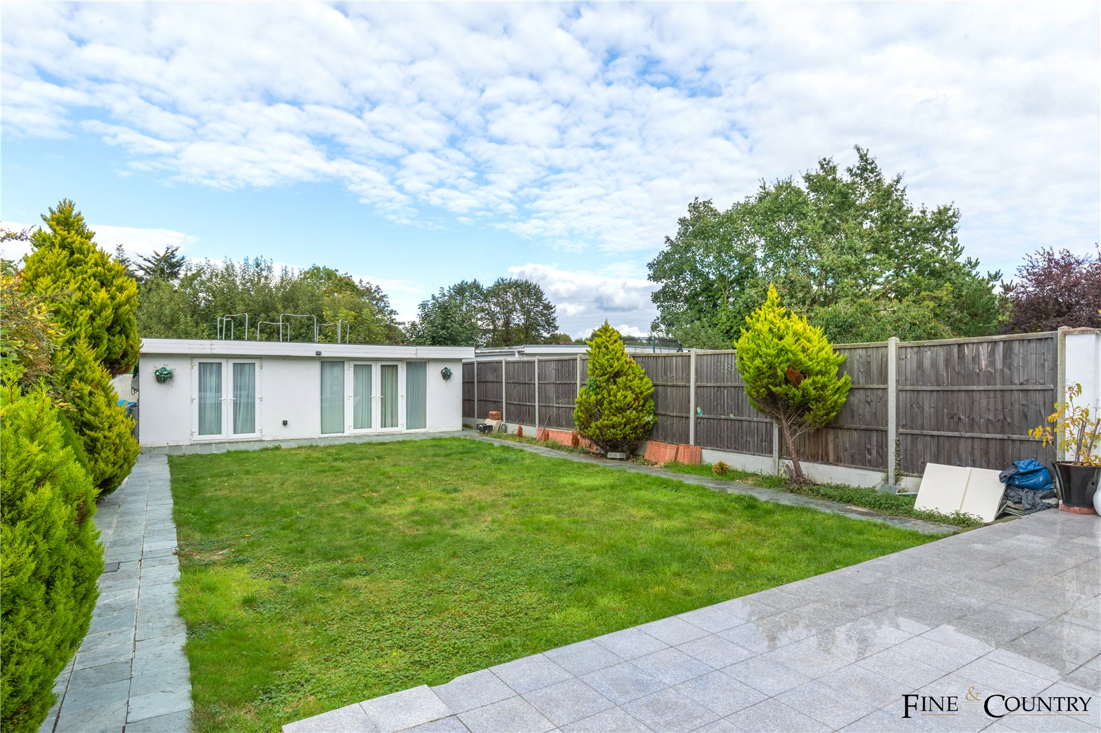 The rear garden of this home is a beautifully landscaped oasis, stretching approximately 85 feet in length and providing a perfect blend of tranquillity and functionality. Ensuring complete privacy, the garden features a lush, well-kept lawn and a spacious patio area, ideal for hosting gatherings or simply relaxing outdoors. Additionally, there is a generously sized outbuilding that functions as a self-contained studio, adding versatility to this serene outdoor space. Whether for children's play, entertainment, or quiet contemplation, this garden serves as a seamless extension of the home's living area, crafted to enhance both leisure and enjoyment.