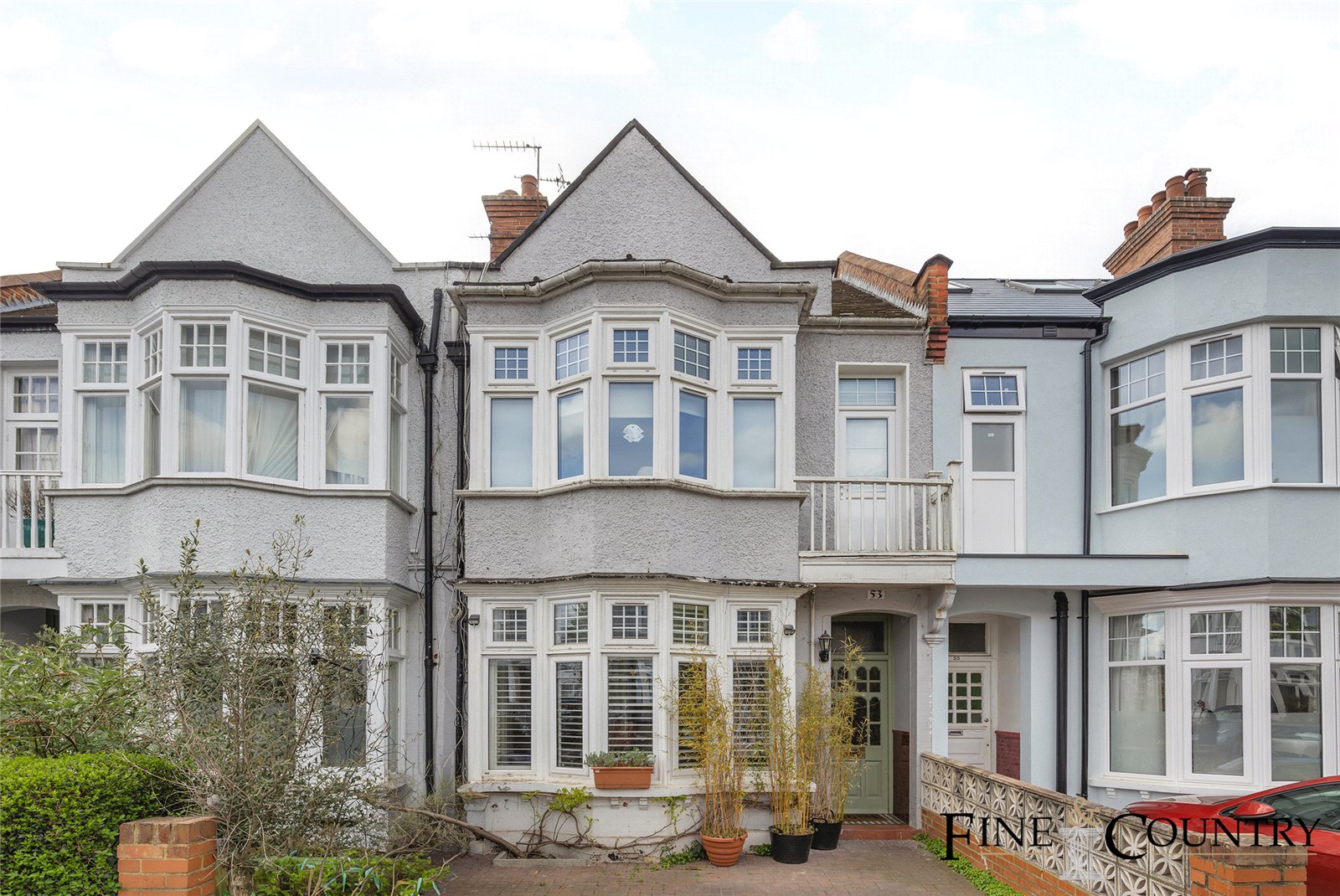 Edwardian bay-fronted terrace home with ornate façade