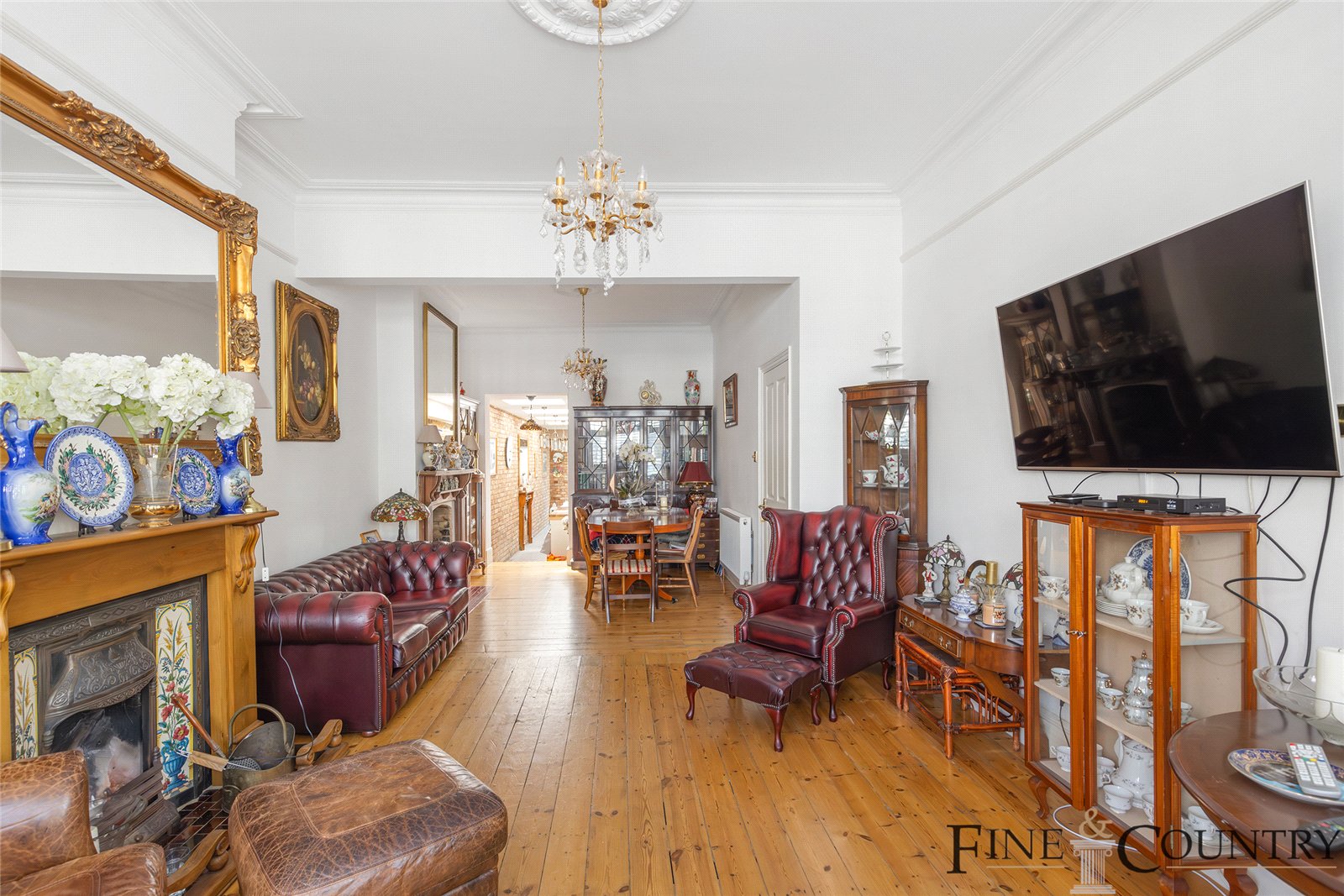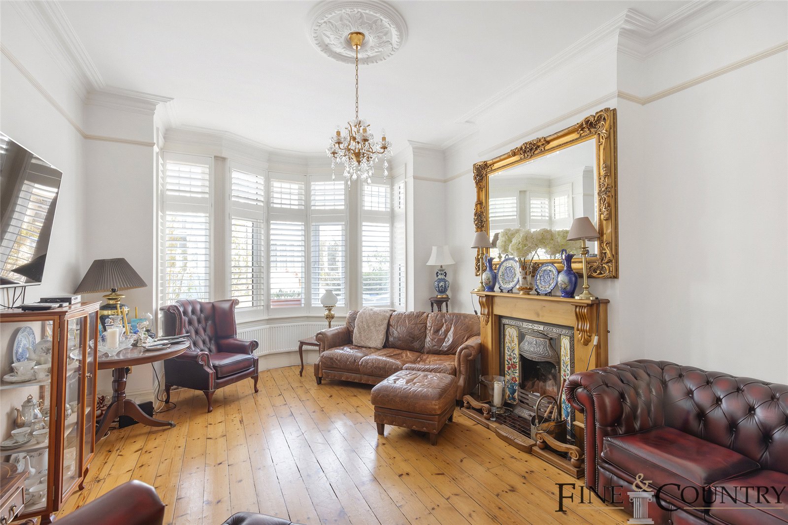 Stunning period fireplaces, cornicing, and stained-glass detail