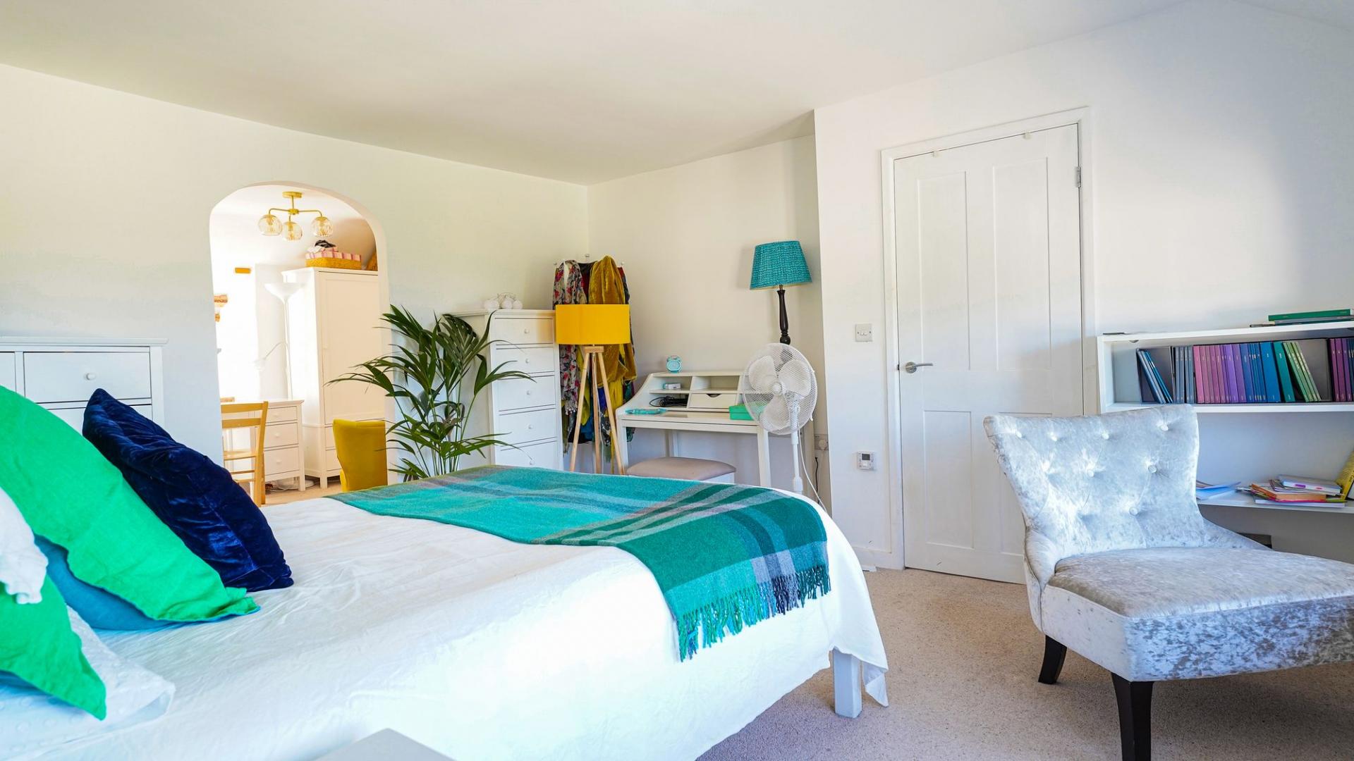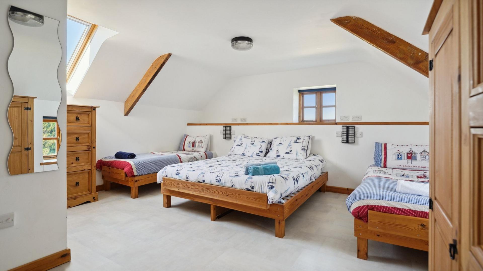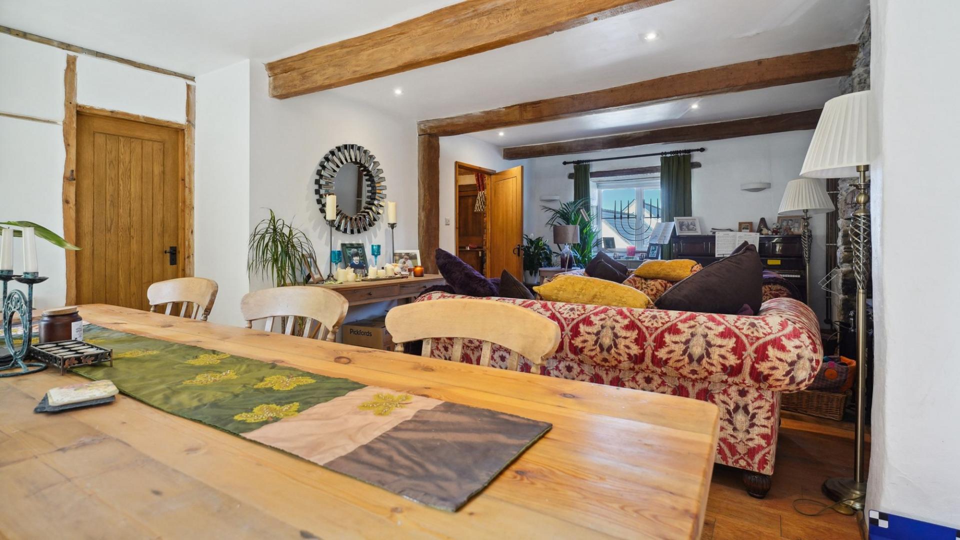 An impressive five-bedroom barn conversion with an expansive 44' x 16' open-plan living area featuring a wood-burning stove and five en-suite bedrooms. This residence embodies a perfect blend of rustic charm and modern comfort.