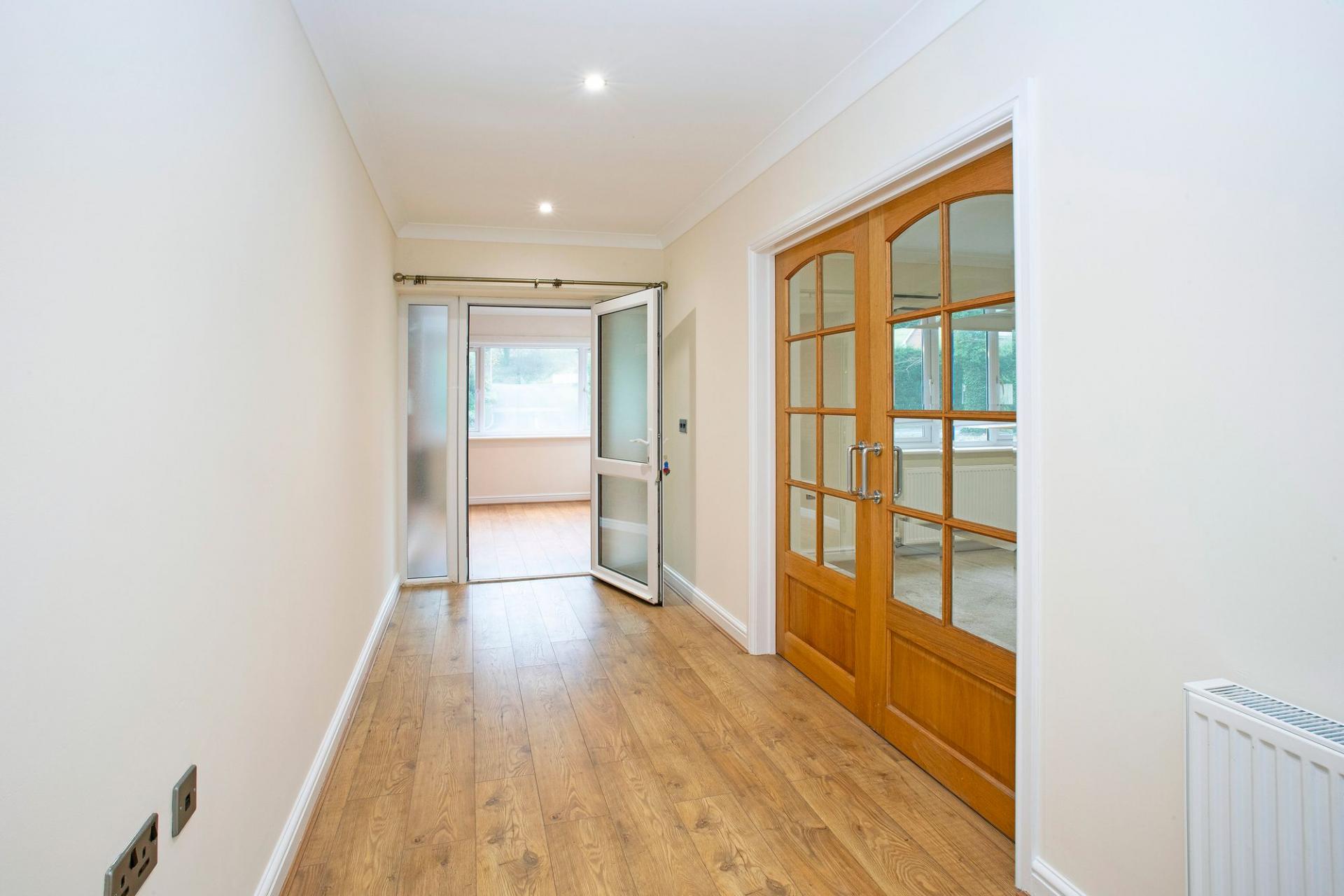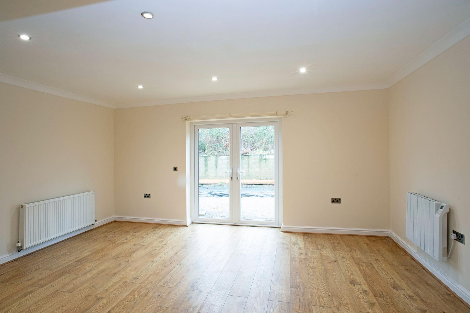 Rear aspect, two radiators, coved ceiling, inset spot lighting and laminate wood engineered flooring leading into part glazed double doors.
