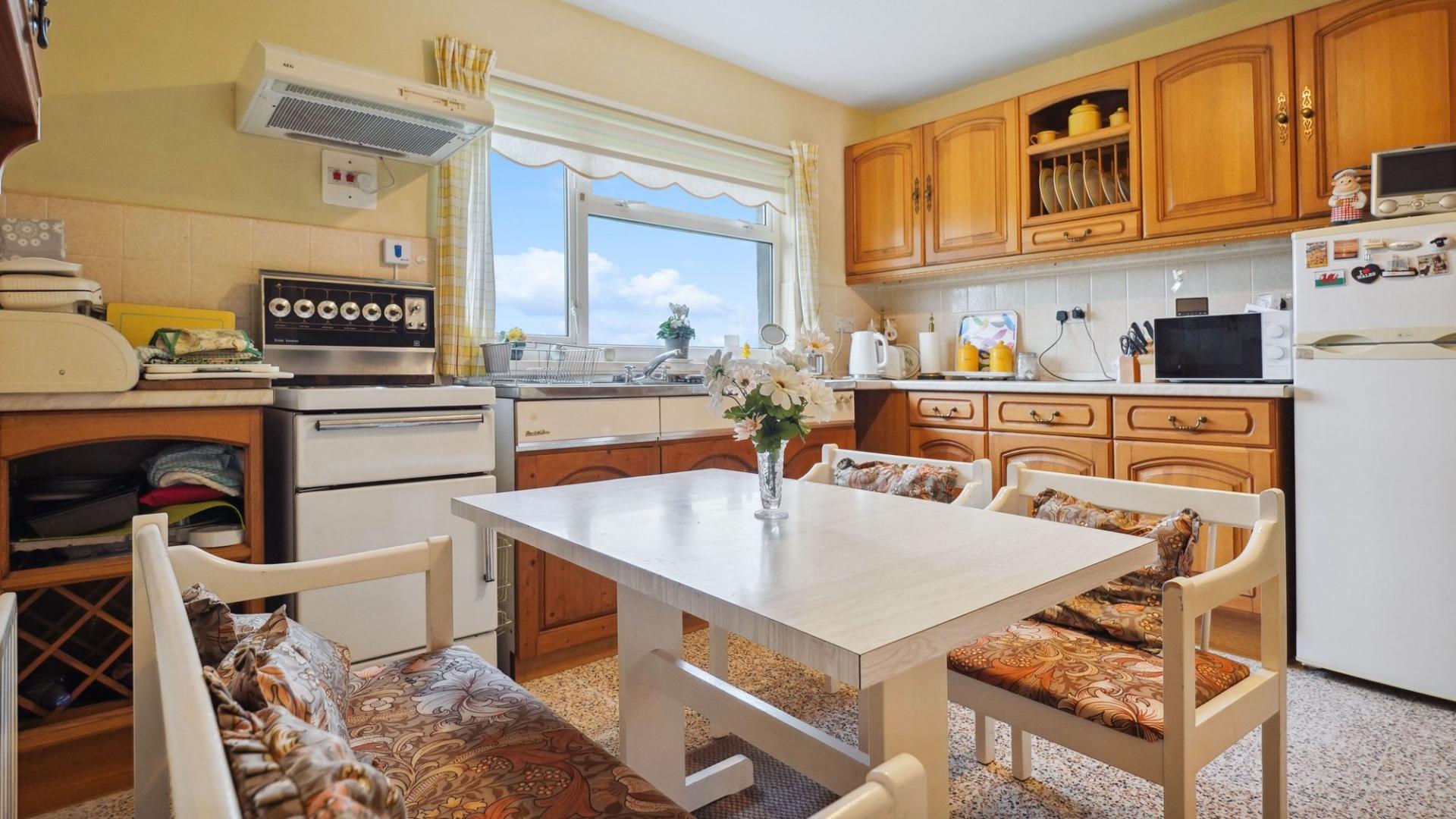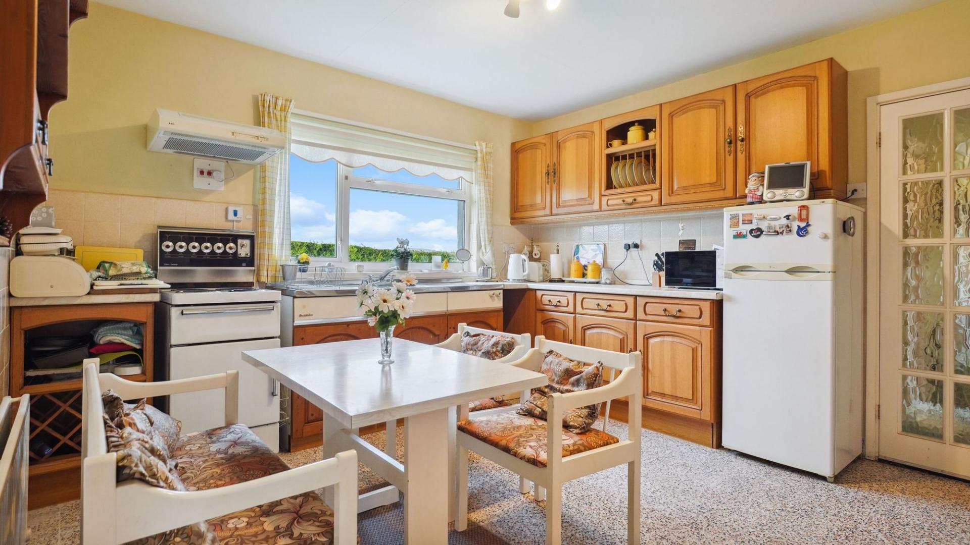 The property features spacious accommodation, including three well-proportioned bedrooms, ideal for family living or hosting guests. The large lounge is filled with natural light and boasts picture windows that perfectly frame the spectacular mountain views, along with a cosy feature fireplace. The kitchen has excellent lighting along with a versatile space with room for a dining table for family dinners. A family bathroom and an additional WC provides convenience for everyday living.