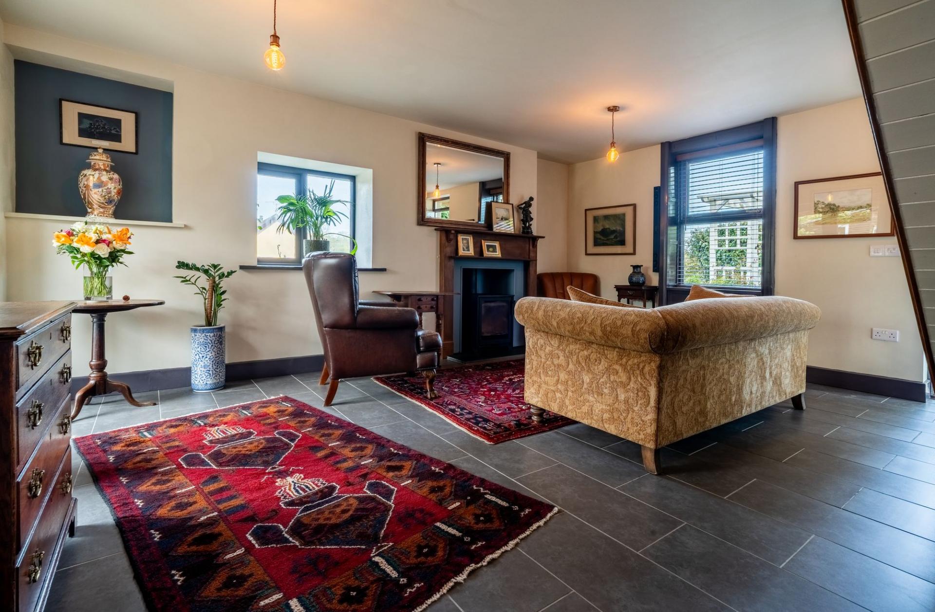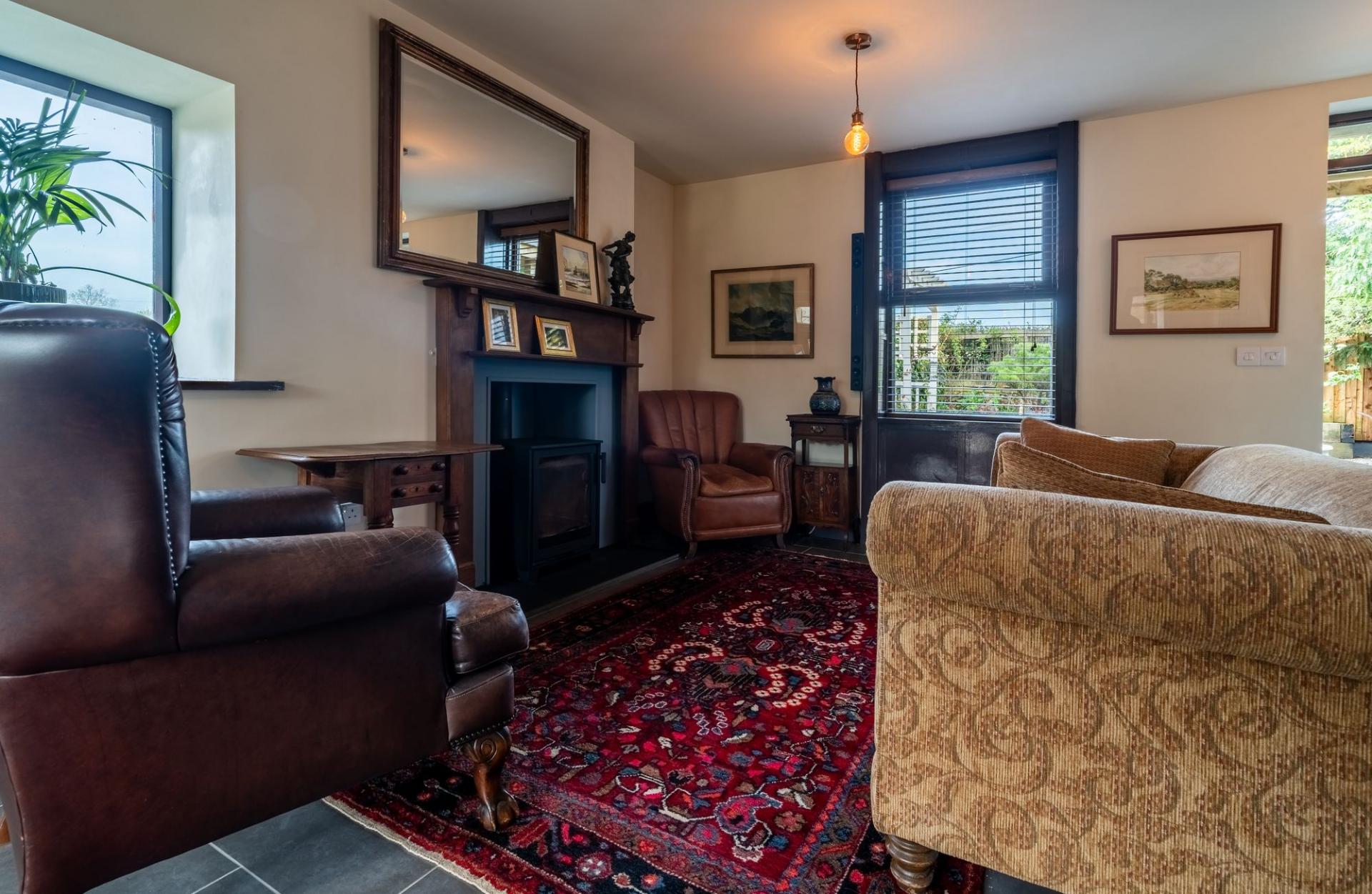 Sympathetically renovated in 2015, the property retains many original features while benefiting from a full rewire, damp proofing, and comprehensive insulation to the floors, walls, and roof. In late 2024, further eco-friendly upgrades were installed, including a heat pump, solar panels, and a solid fuel stove—ensuring warmth, comfort, and cost-efficiency year-round.