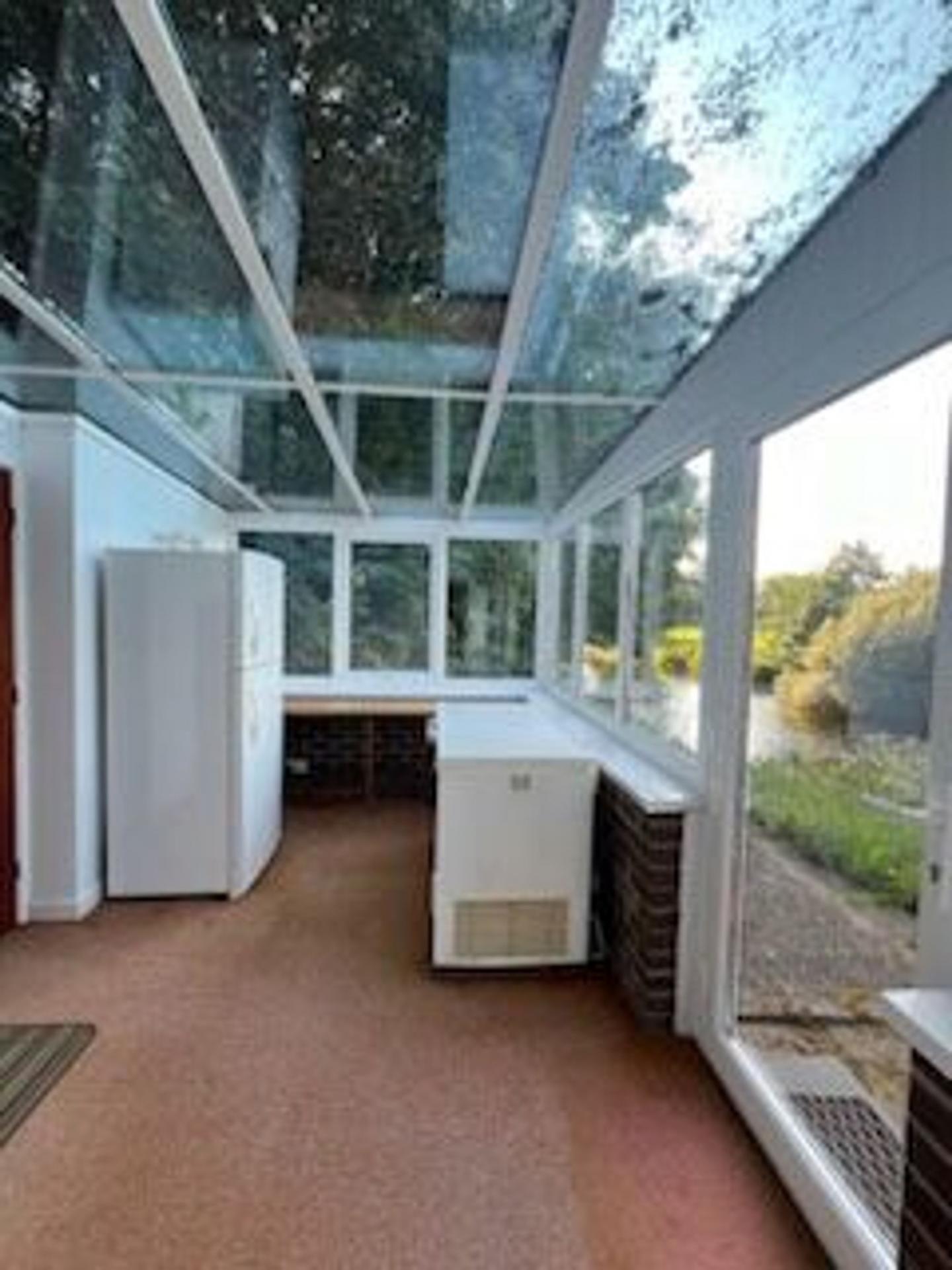 A beautiful aspect with French doors to outside and the large, canopied entrance porch / veranda and this has an extensive range of built in shelving units, radiator and door into;