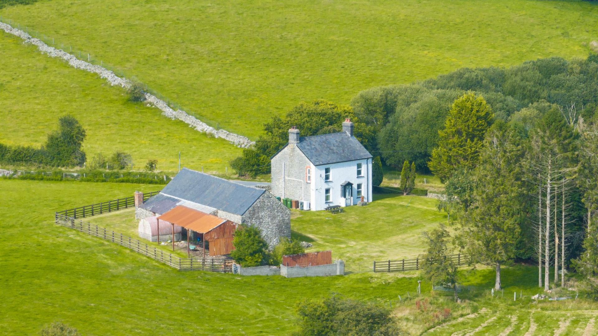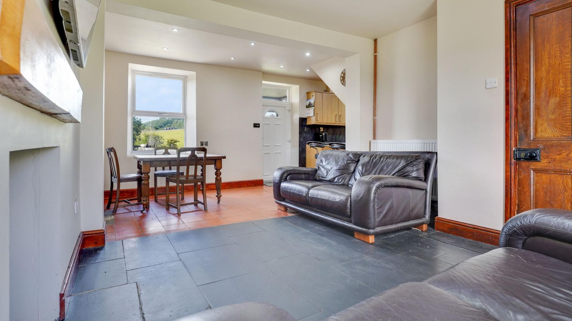 Accessed via a splay-gated driveway framed by natural stone walls, the property opens into a spacious, open-plan yard and is nestled within approximately 15 acres of gently rolling pasture. At its heart lies a traditional stone-built farmhouse, which dates back to the early 1900s, offering comfortable family living in a wonderfully tranquil setting.