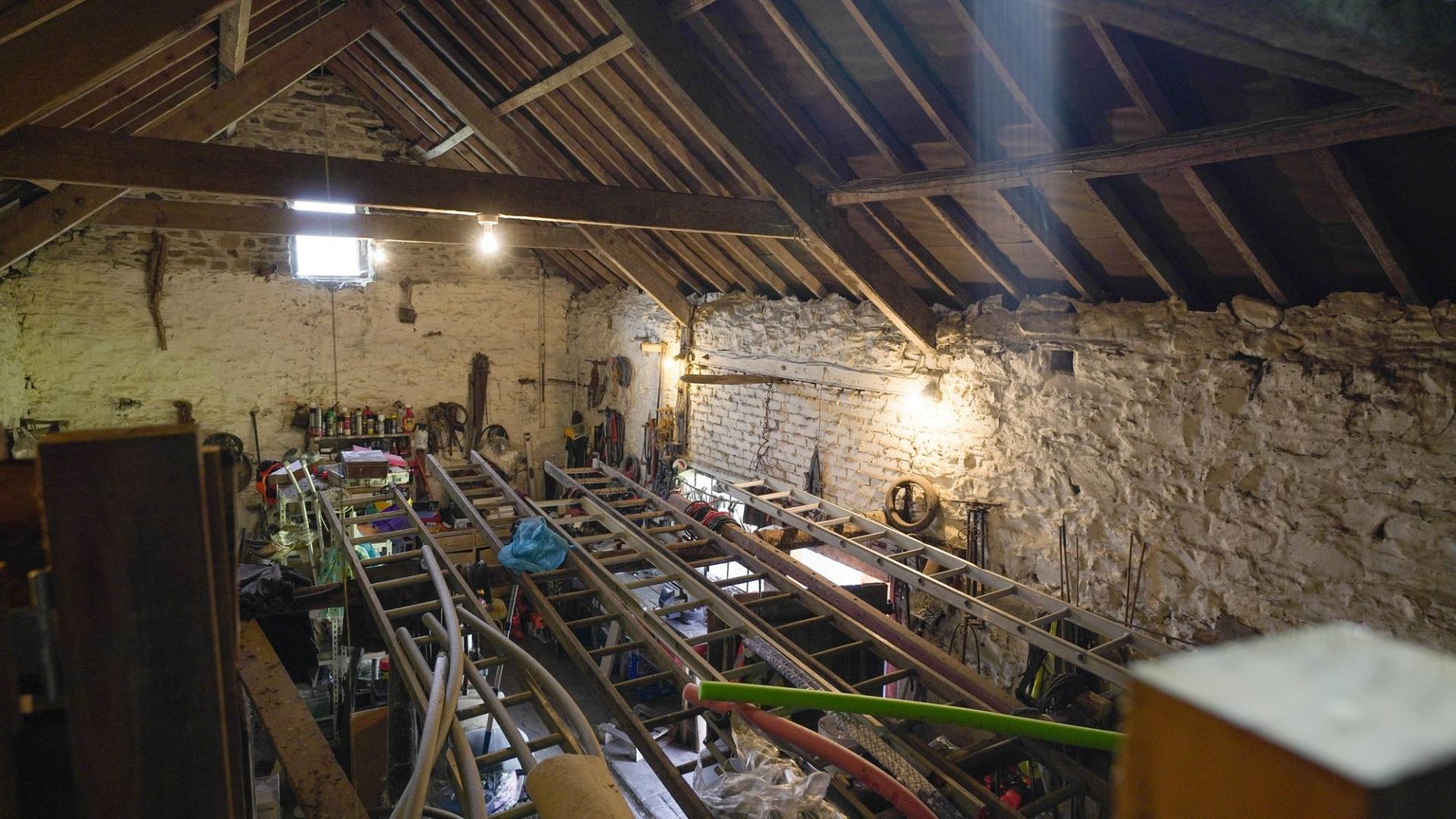– Workshop/store shed (5m x 9.3m) – incorporating part of the original structure with stairs to a loft above