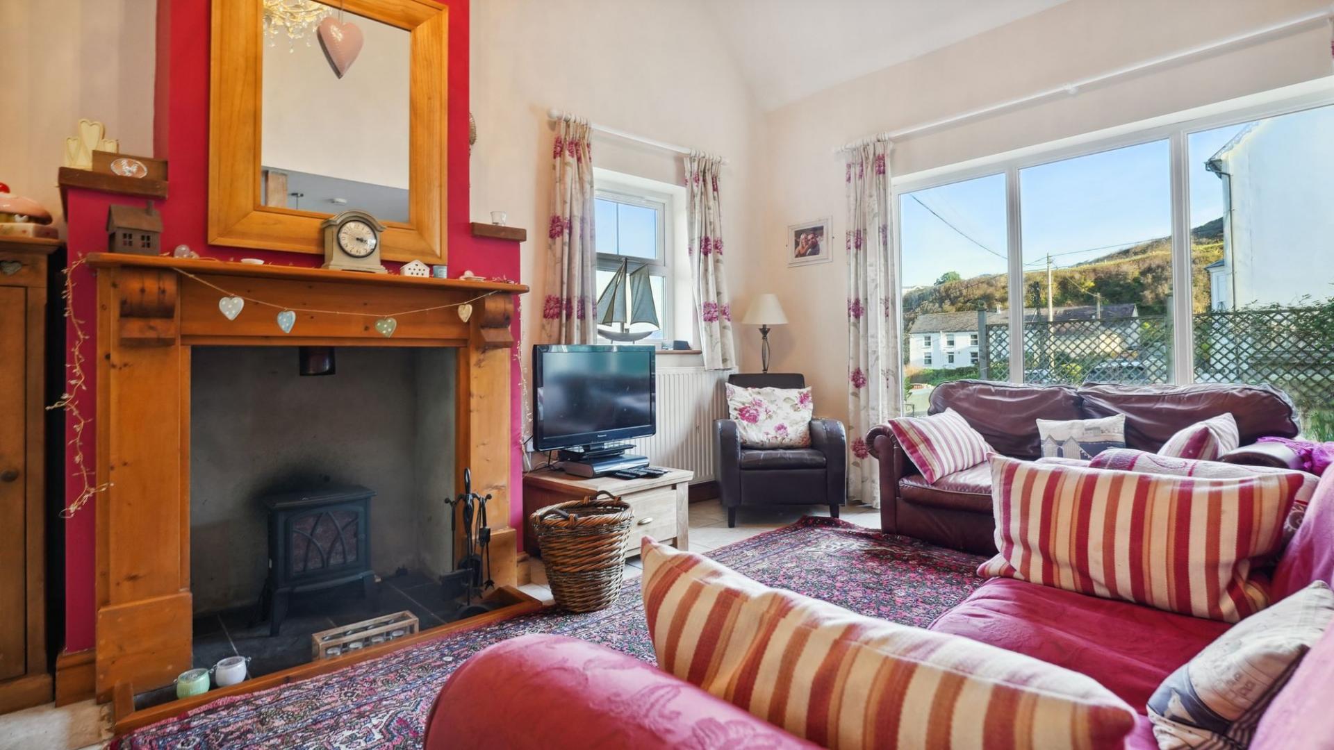 The property offers double glazed windows, gas central heating, an attractive fireplace with potential for a wood burning stove, good outside areas, parking to the front and magnificent sea views from the sitting room and front garden.