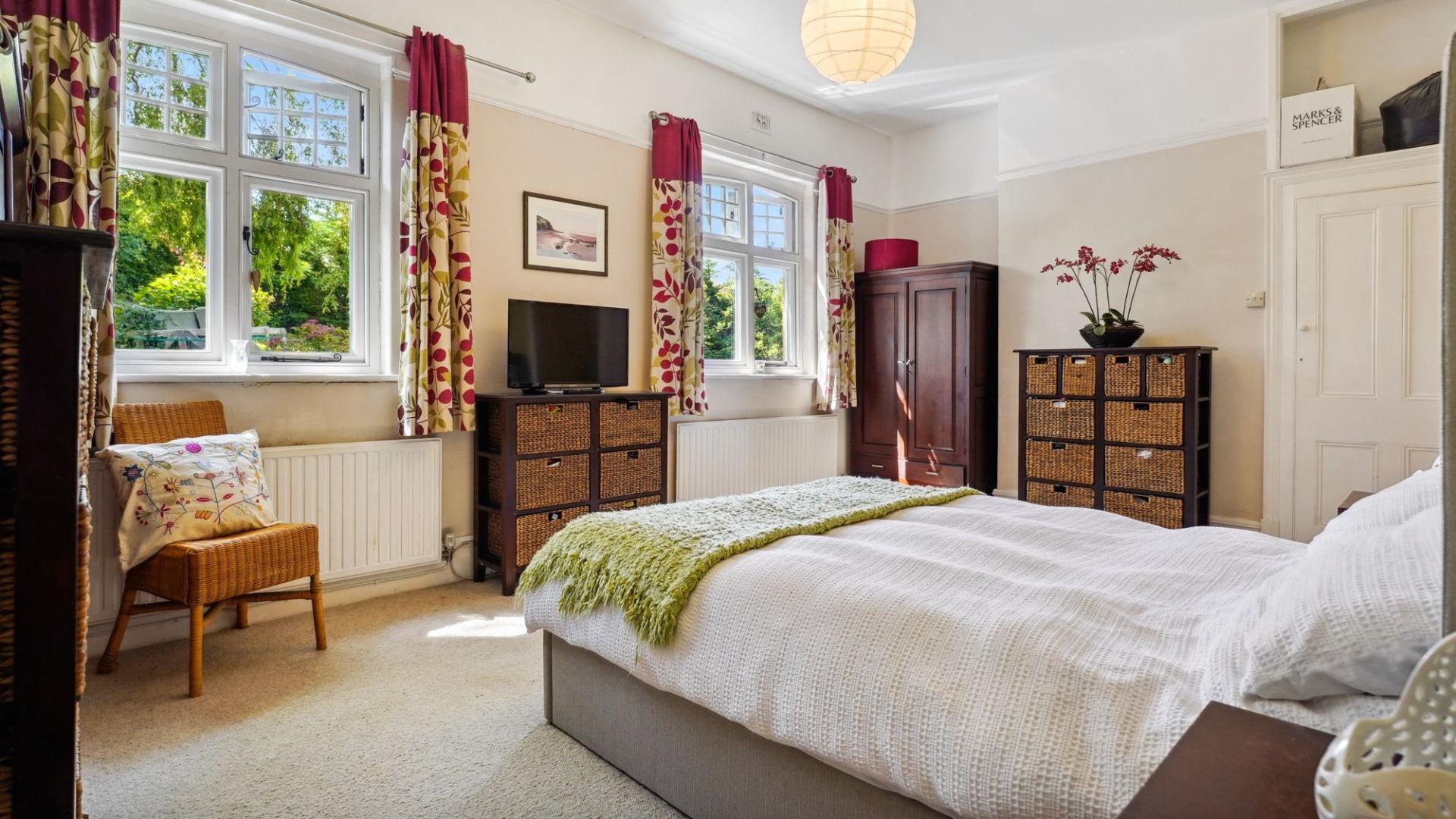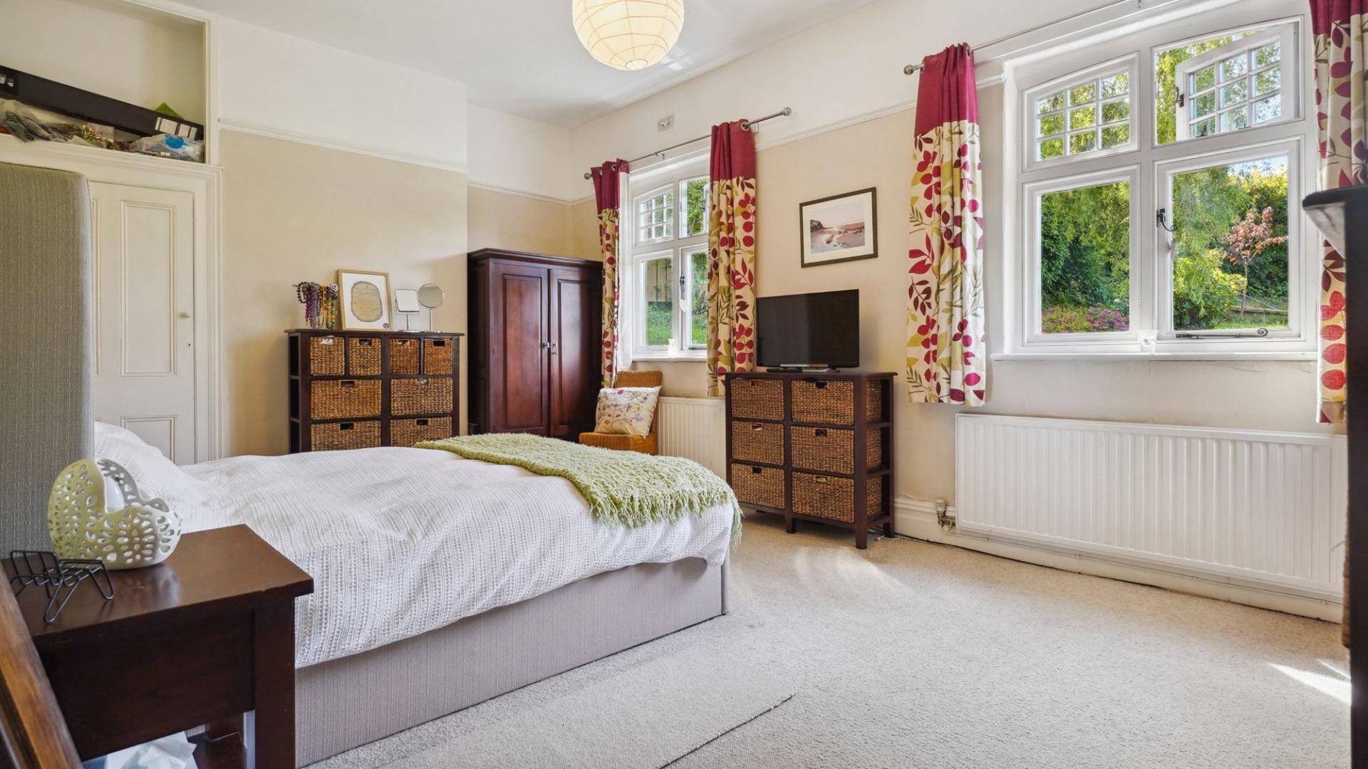 With wooden double-glazed window, radiator, picture railing and built in wardrobe cupboard.