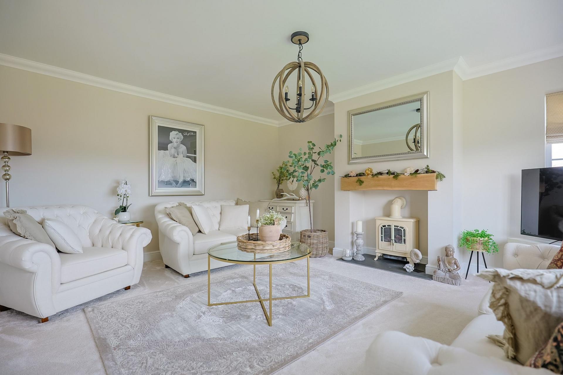 An exceptional and beautifully presented space—undoubtedly the heart of the home. Slate tile flooring, panelled walls, and a blend of spot and feature lighting create a stylish yet practical living area. Large windows and an orangery-style feature flood the room with natural light and frame picturesque outlooks, making it perfect for both entertaining and relaxing.