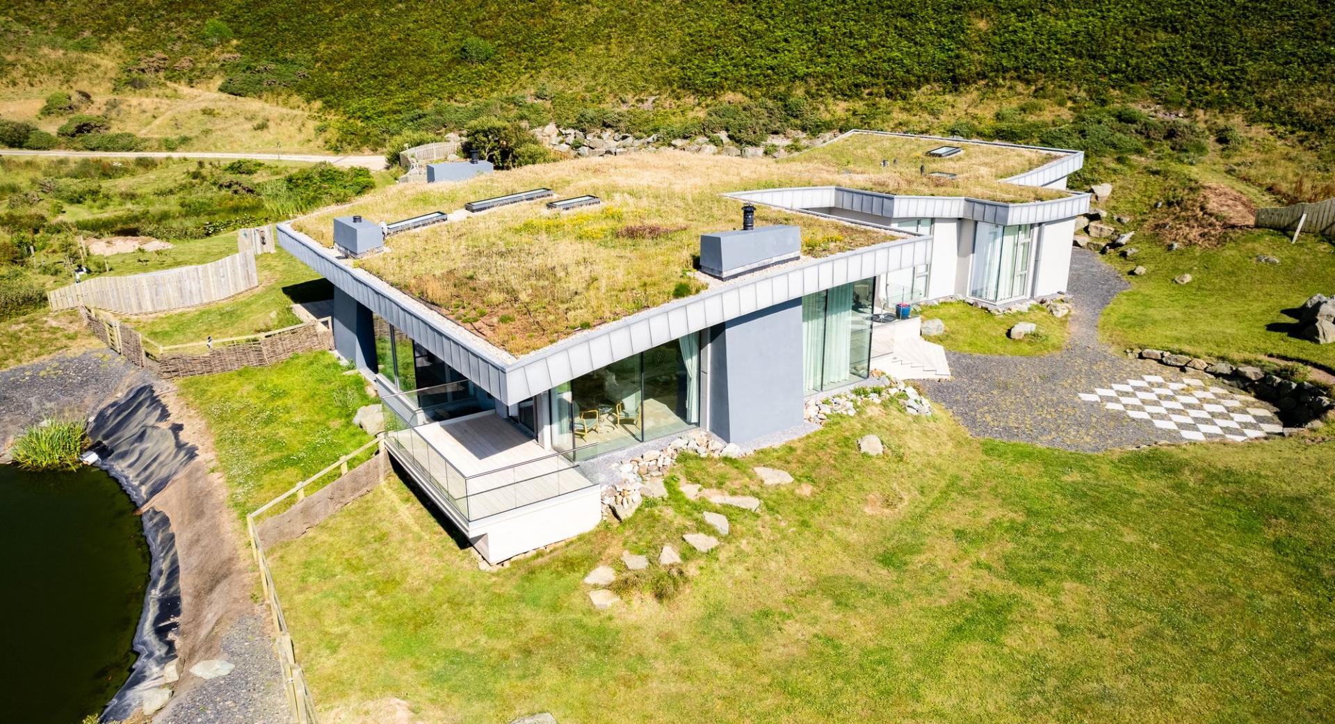 Designed by acclaimed architect Tom Kinver and awarded Wales Home of the Year 2020/21, this iconic four-bedroom property combines curvilinear design, a living roof, and light-filled interiors with a rare degree of privacy and position. From the moment you arrive via the sweeping driveway, it is clear this is a home of substance, style and complete seclusion.