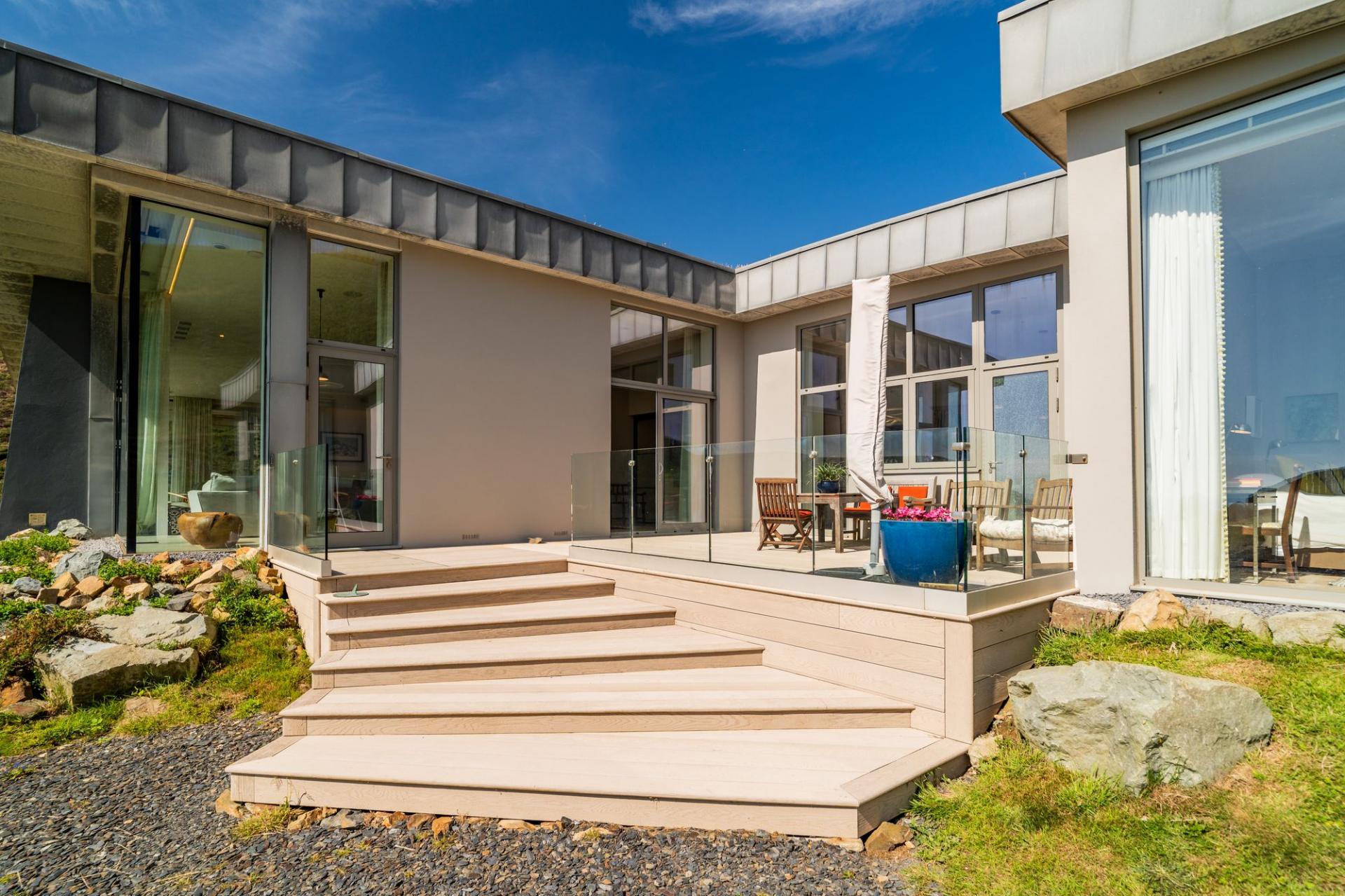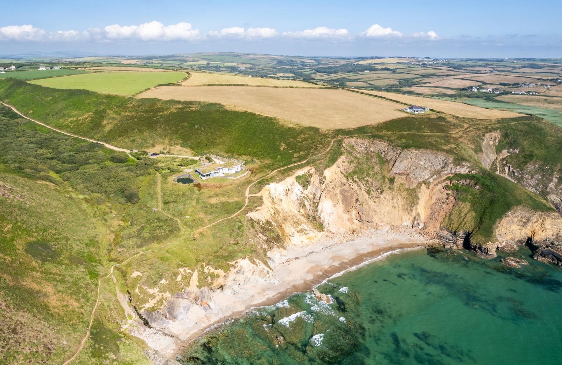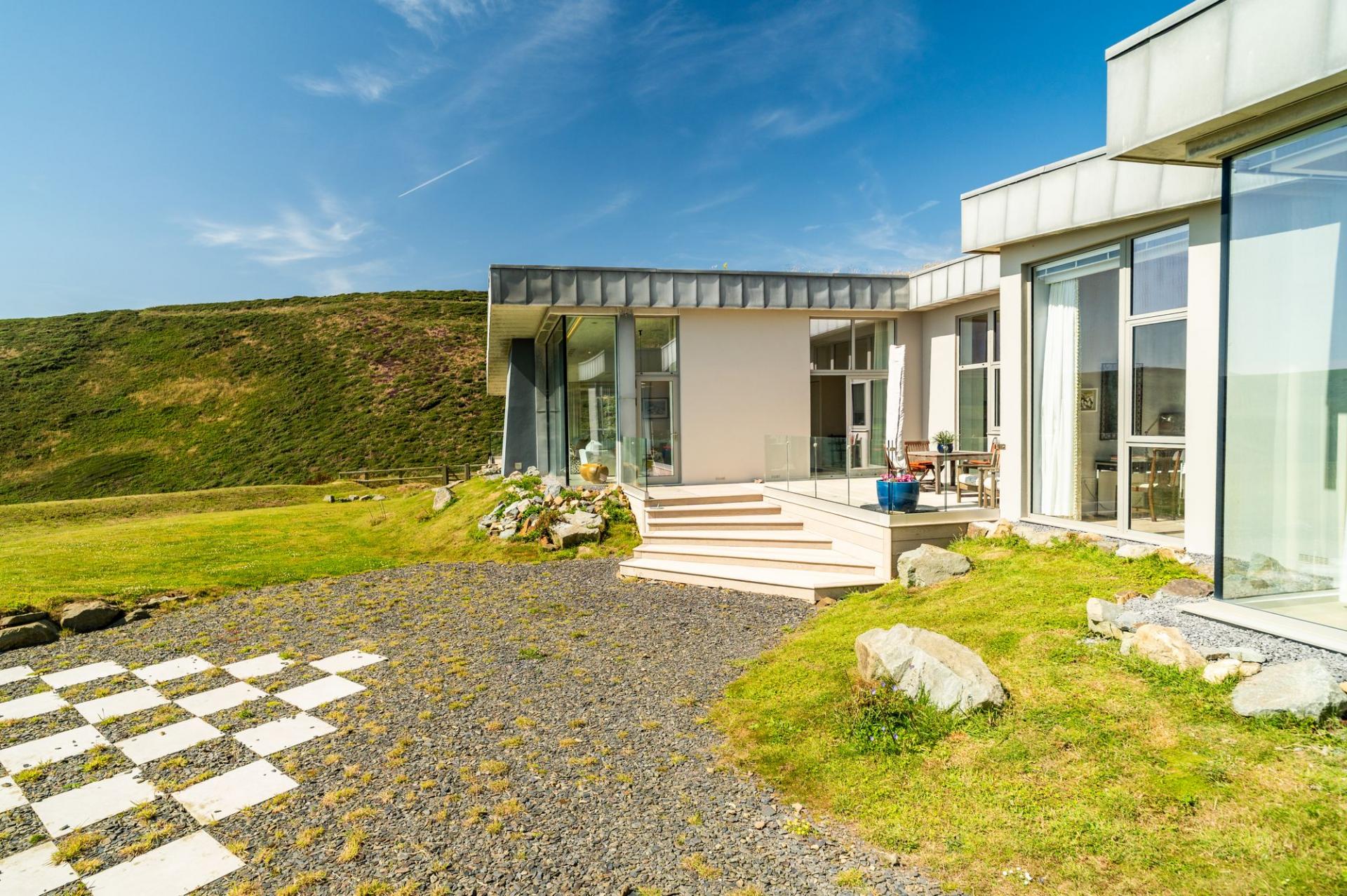 A landmark in contemporary Welsh architecture, Cwm Mawr is an extraordinary coastal residence set in over 18 acres of private grounds above Pen-y-Cwm beach, commanding cinematic views over St Brides Bay and the surrounding Pembrokeshire Coast National Park