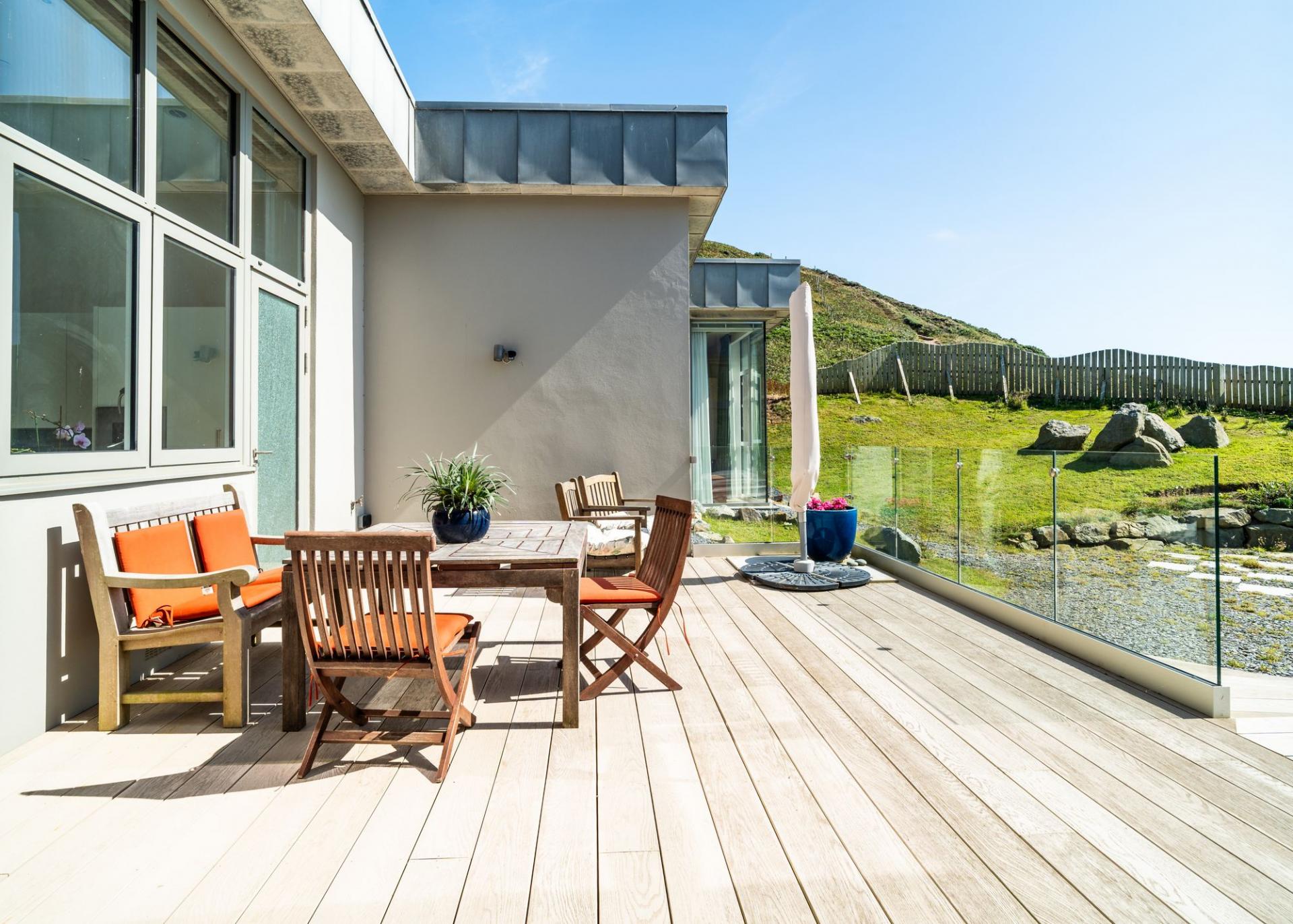 Outside, landscaped wildlife-friendly gardens, stunning ponds and secluded entertaining terraces and decks, most of which have magnificent coastal views. The front terrace is a delightful secluded space with pizza oven and verdant gardens. The beach and Pembrokeshire Coast Path are moments away, with Newgale, Solva and Haverfordwest within easy reach.