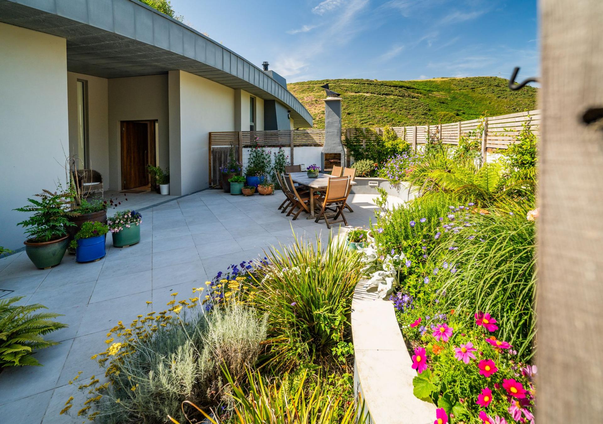 The south-facing terrace is a sublime place for morning coffee or evening wine. Landscaped into the hillside, the garden flows seamlessly into wild meadows and woodland.