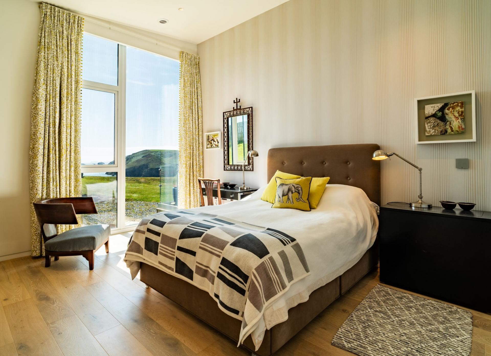 The largest of the guest bedrooms, this room offers a generous footprint and wide glazing for sweeping views over the Pembrokeshire coastline. Perfect for a super-king layout with seating area, it delivers a sense of openness while retaining privacy.