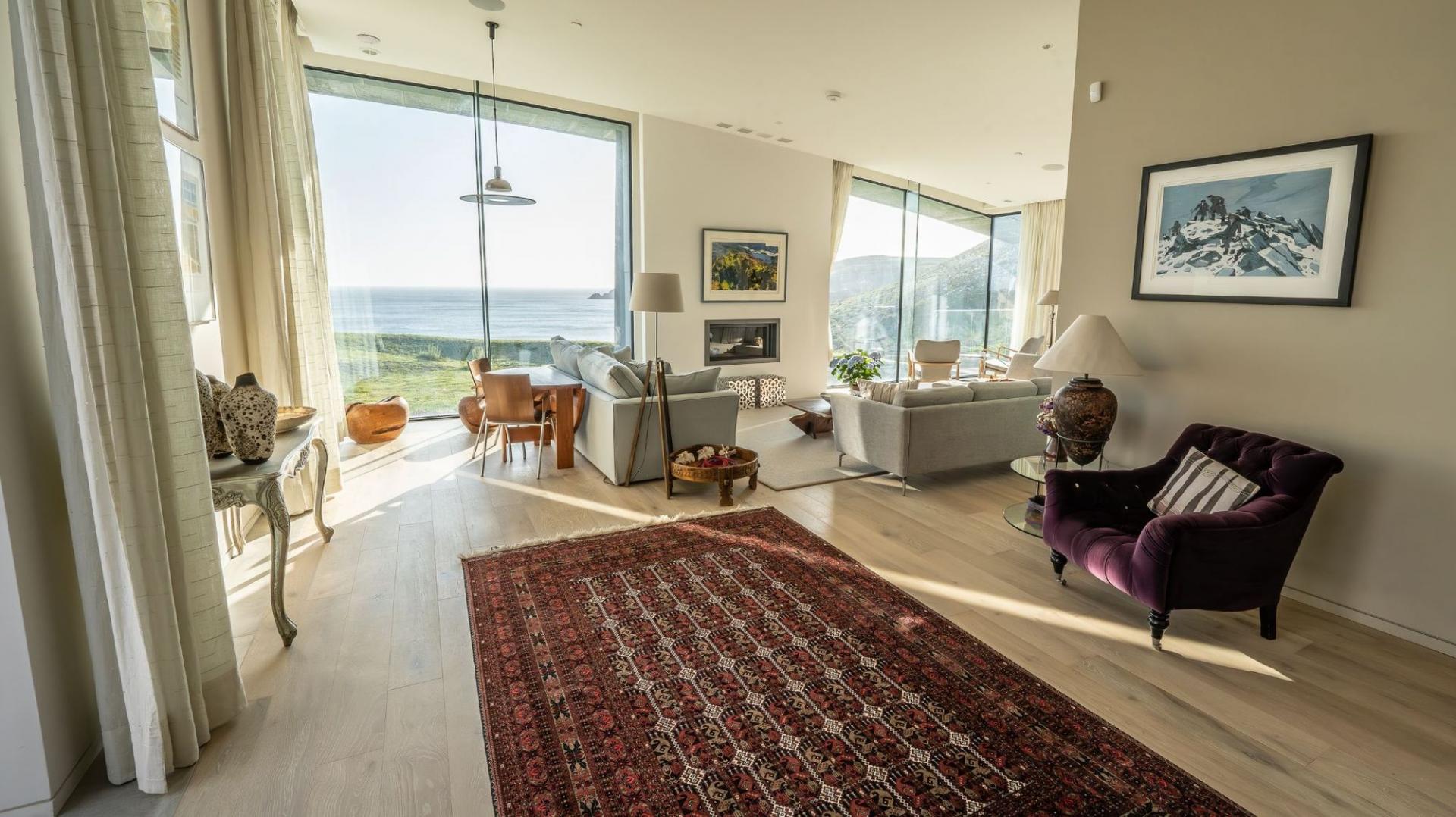 A true masterpiece of design—this room celebrates air, light, and the coastal setting in every detail.