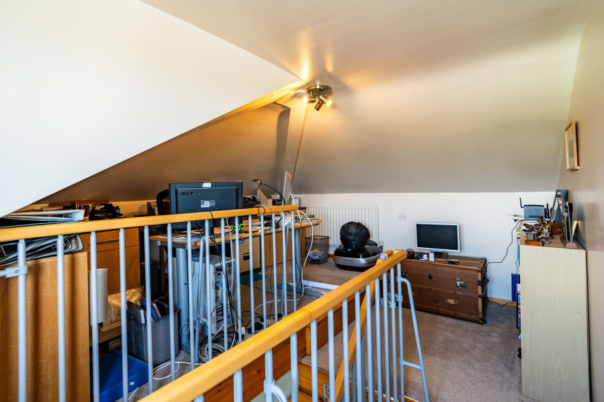 Situated on the top floor, Bedroom 3 is decorated in soft neutral tones and benefits from large windows, including a Velux, which flood the space with natural light. Ideal as a guest room, it offers both comfort and privacy. Access is via the hallway office/study, adding to its sense of seclusion.