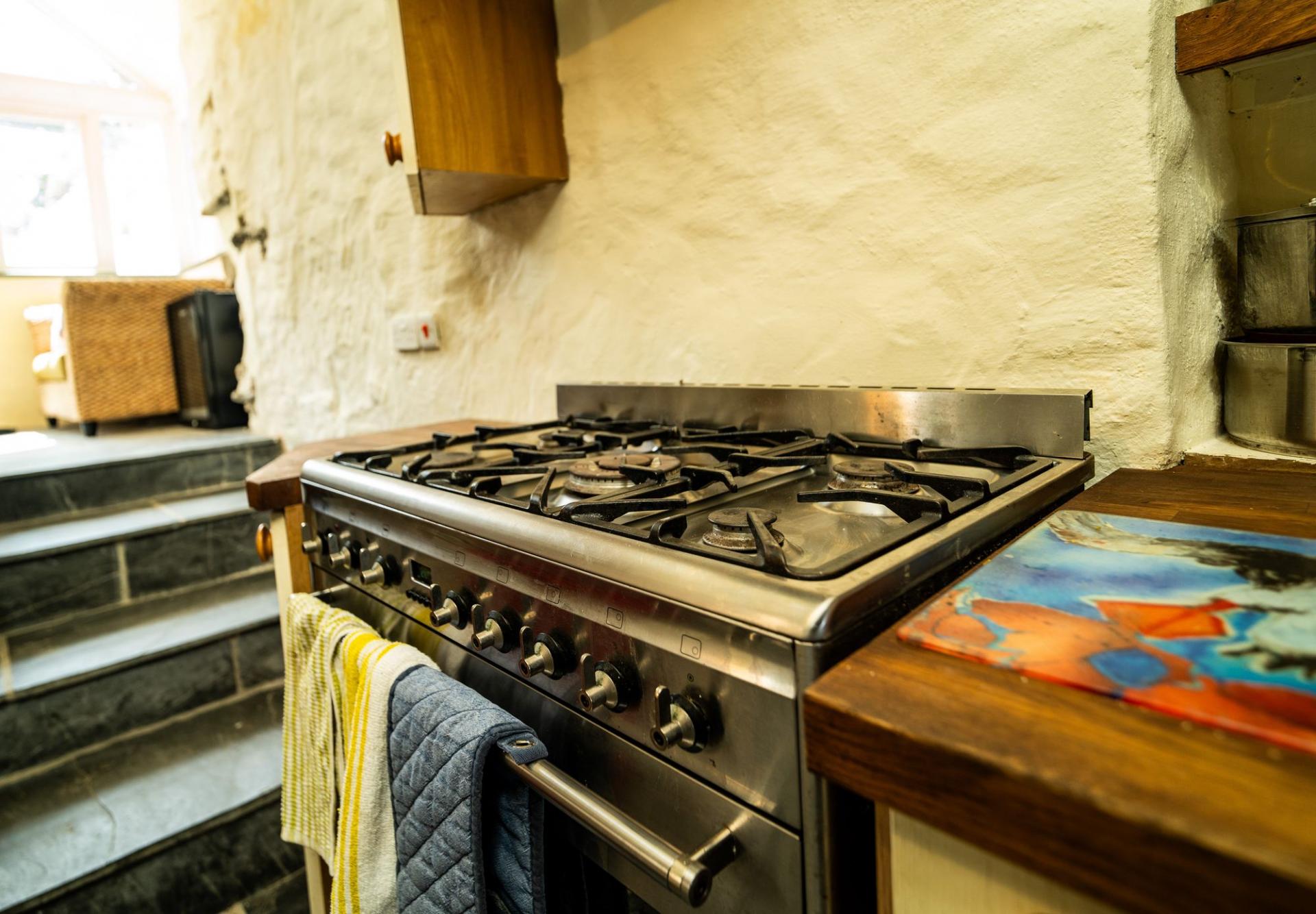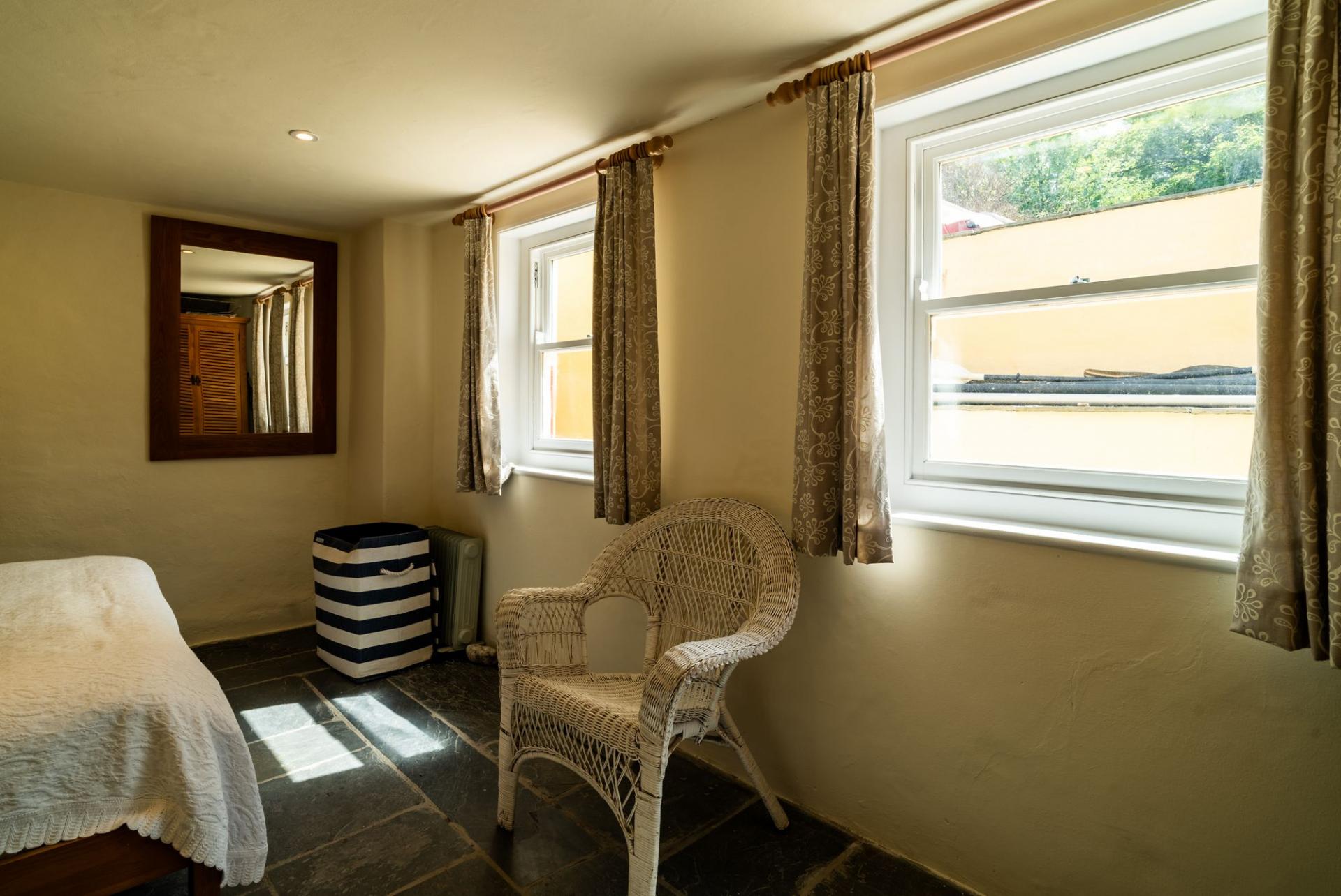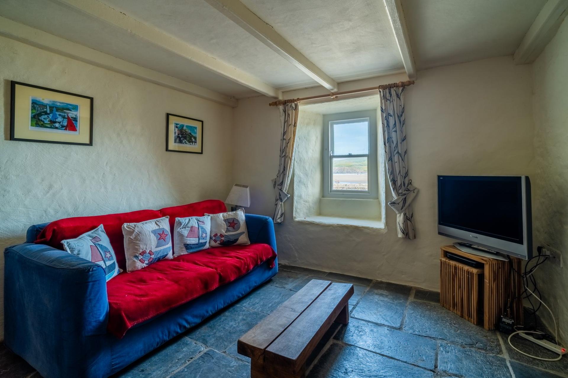 Front-facing with estuary views, open fireplace, beam ceiling, slate floor with underfloor heating.