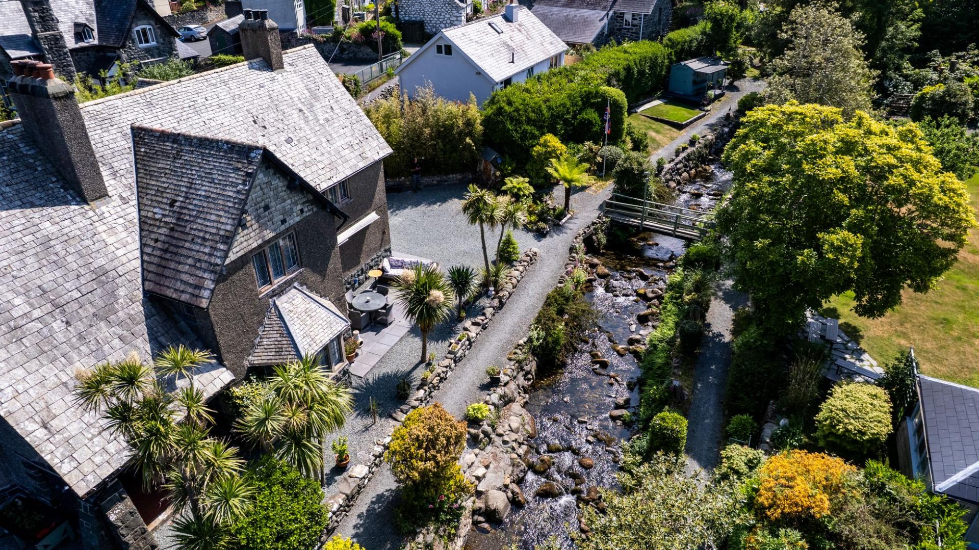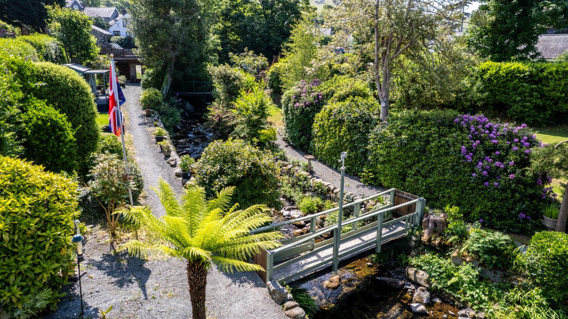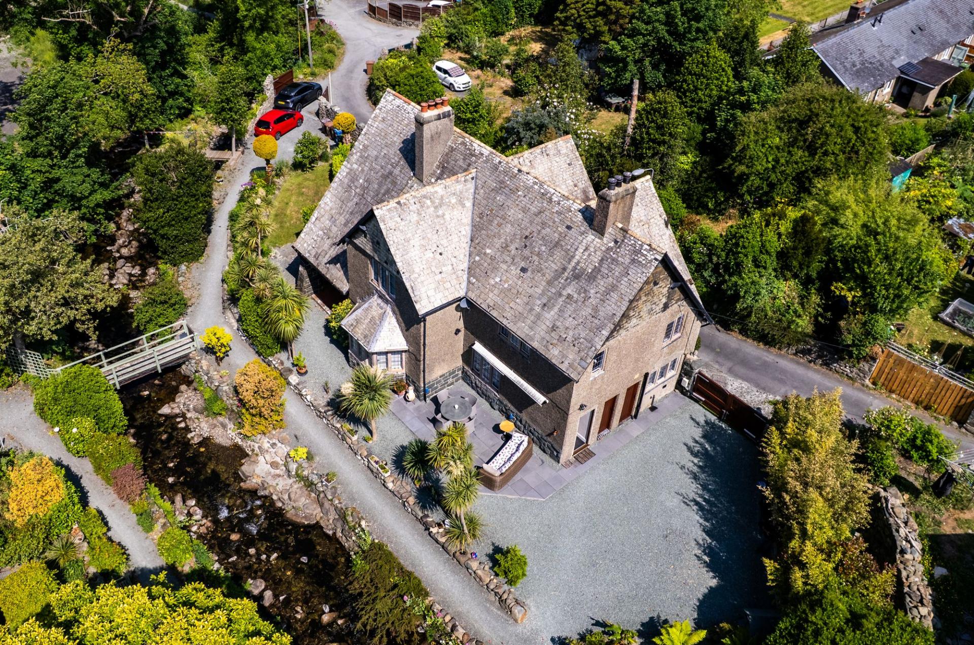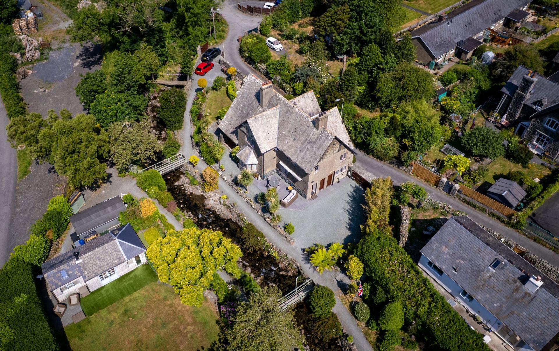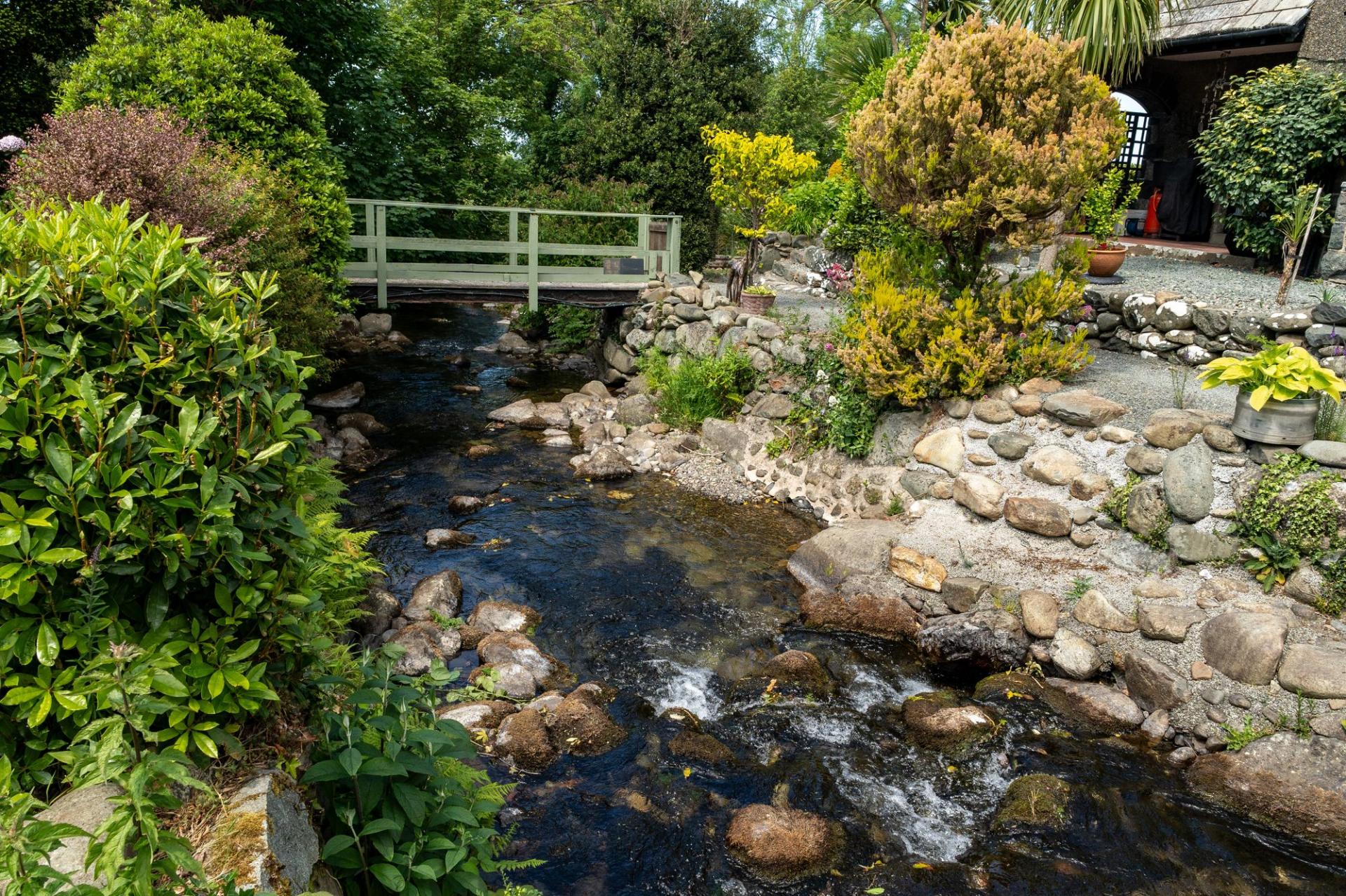 A unique feature of this extraordinary home is the river Gwril that flows directly through the grounds, separating the main house from a useful annexe across the water—ideal for guests, work-from-home space, or a creative retreat.