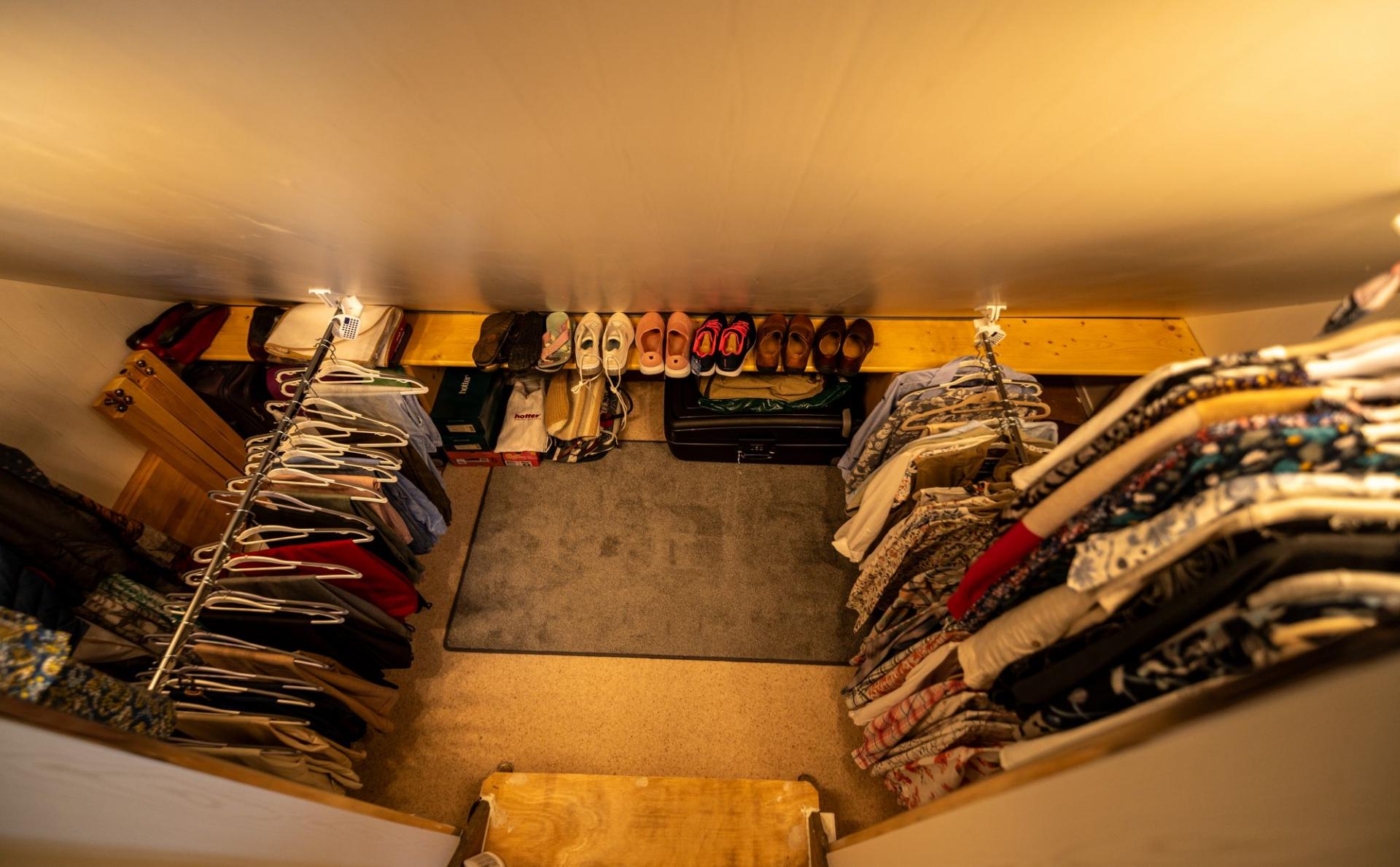 Dual-aspect master bedroom with sea views, original ornate fireplace, leaded light windows, and access to a walk-in dressing room/eaves space. Overlooking Mill Street.