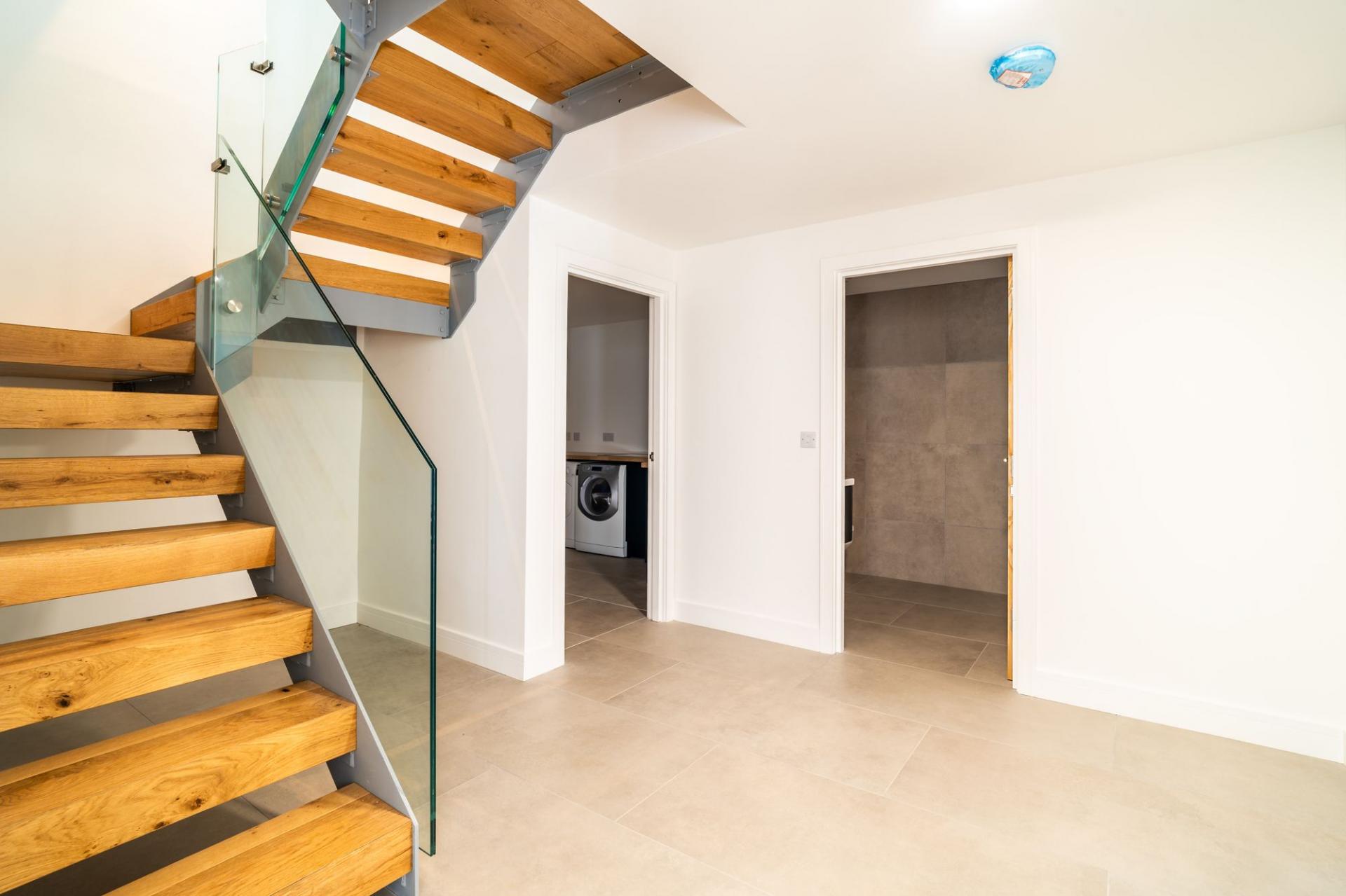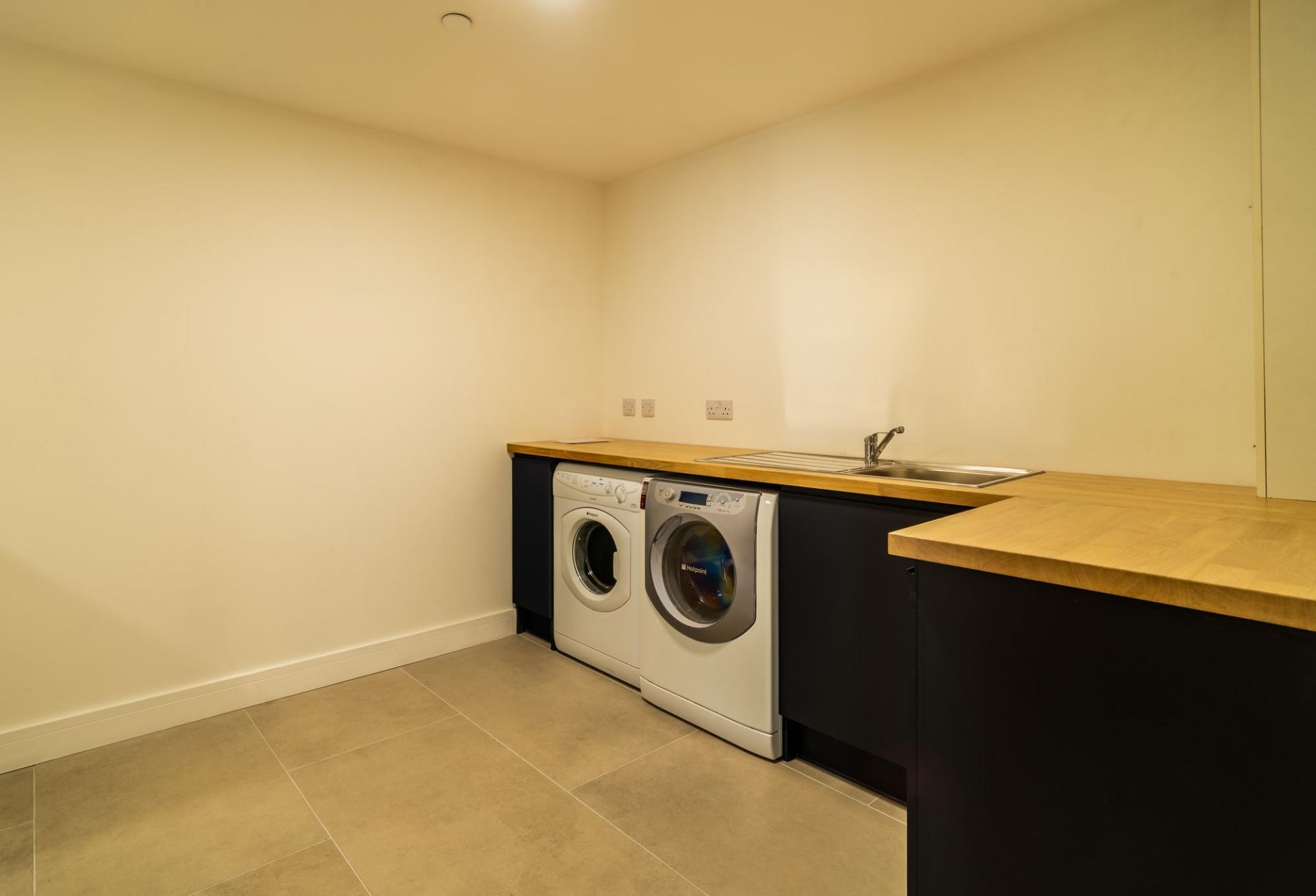 Housing the technology for the PassivHaus and also offering a utility room with space and plumbing for washing machine and dryer.
