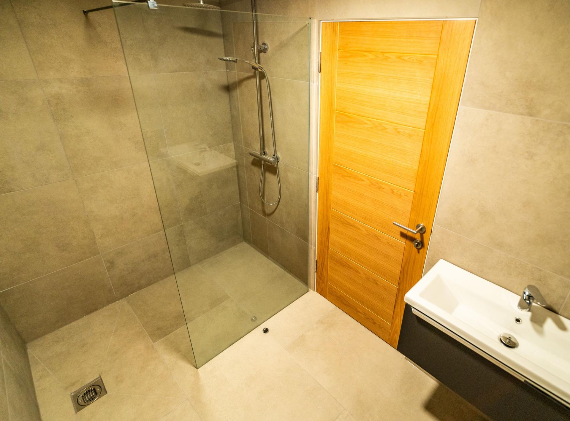Luxury Suite with walk in shower, Low level WC, Vanity Unit, Tiled walls and floors.