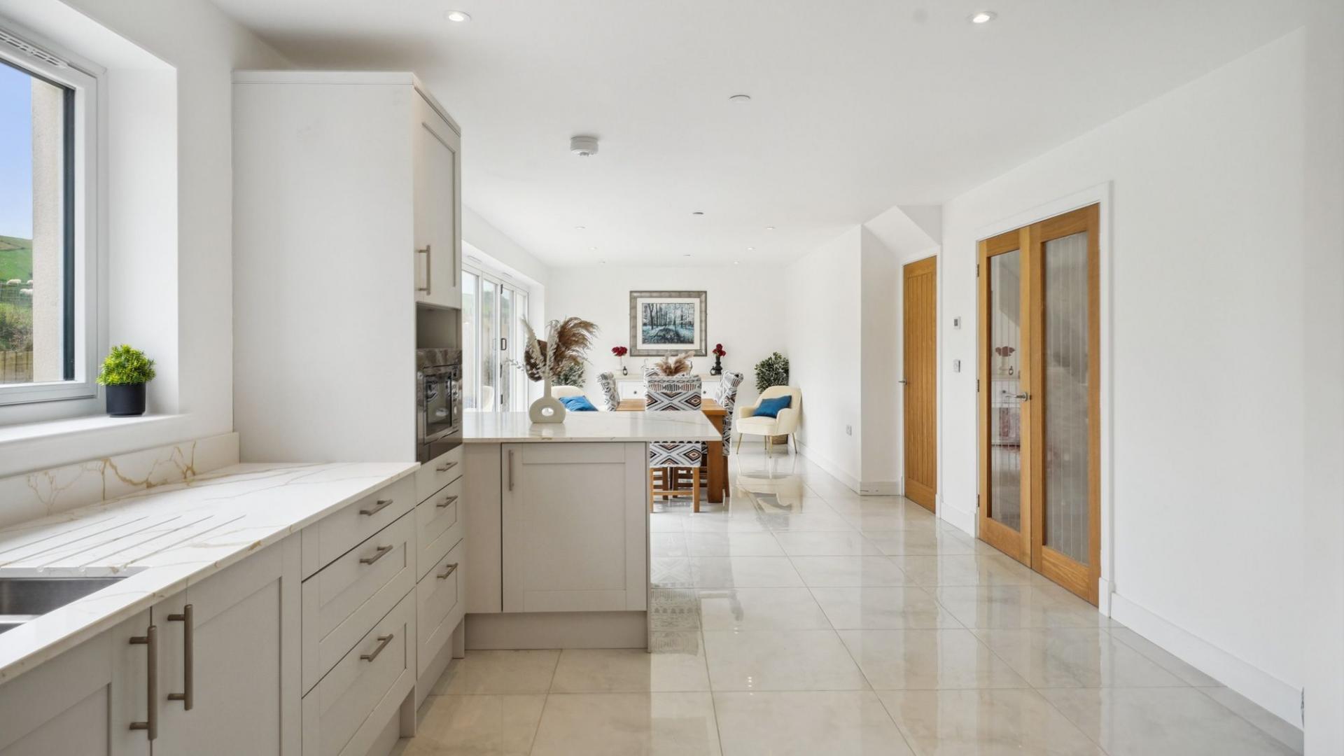 Energy consumption is improved by the installation of integrated solar panels and air source heat pumps. Spanning more than 1,850 sq ft, the expansive living space makes spending time together simple, with enough room for a private retreat after a full day.