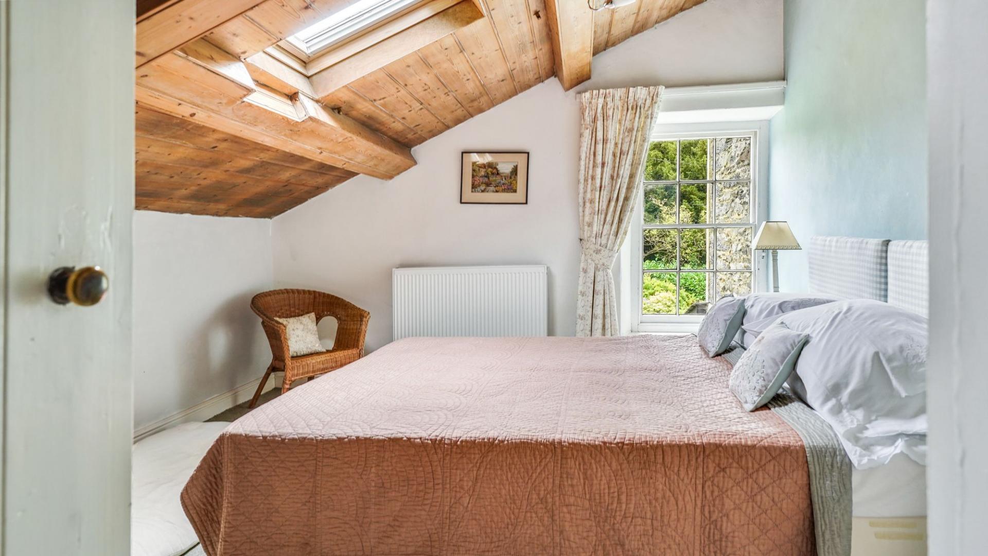 Dual aspect, original window plus a Velux window, radiator and part pine panelled walls and ceiling.