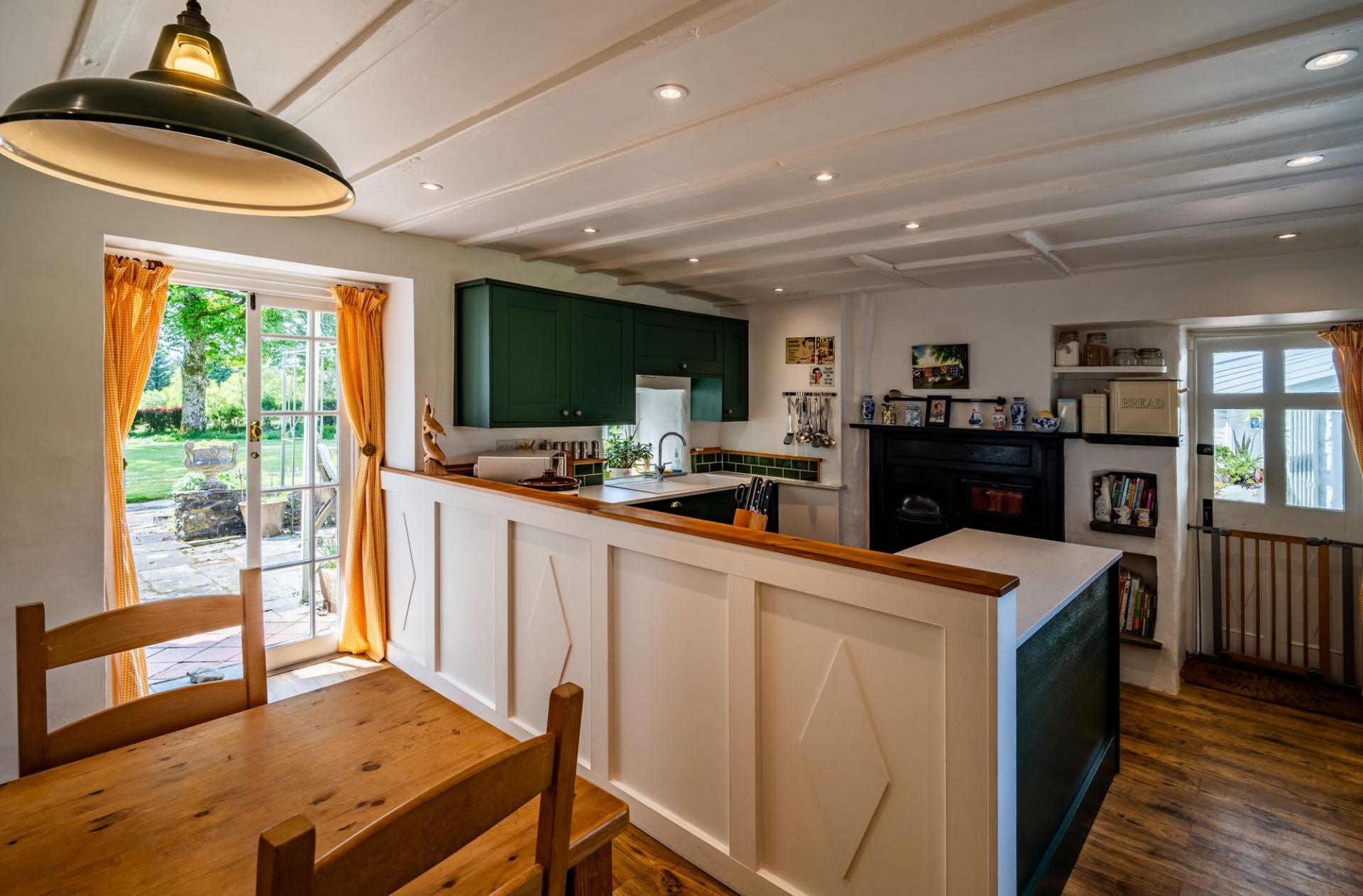The heart of the home is the kitchen/breakfast room, accessed via a stable-style door. This traditional country kitchen enjoys an original fireplace housing a built-in bread oven, a range of base and wall units, single drainer sink with mixer tap, space for a range-style gas cooker, part-tiled walls, and a large walk-in pantry with slate worktop and french doors to garden, which fantastic views.