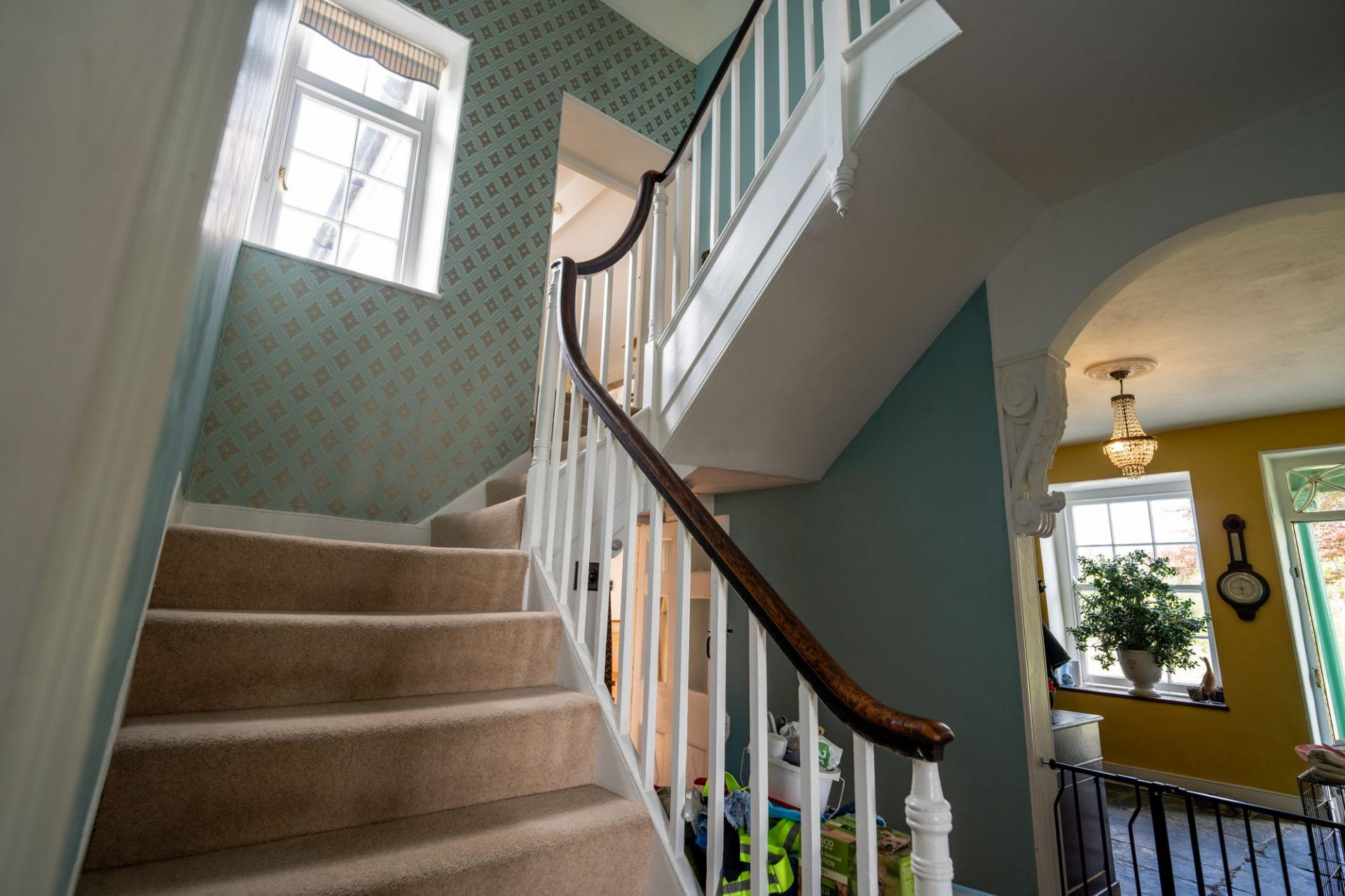 A turning staircase with half landing rises to a spacious and light-filled first floor landing, illuminated by a sash window on the half-landing. The upper landing itself leads to a suite of well-proportioned bedrooms, each rich in character and enjoying wonderful natural light.