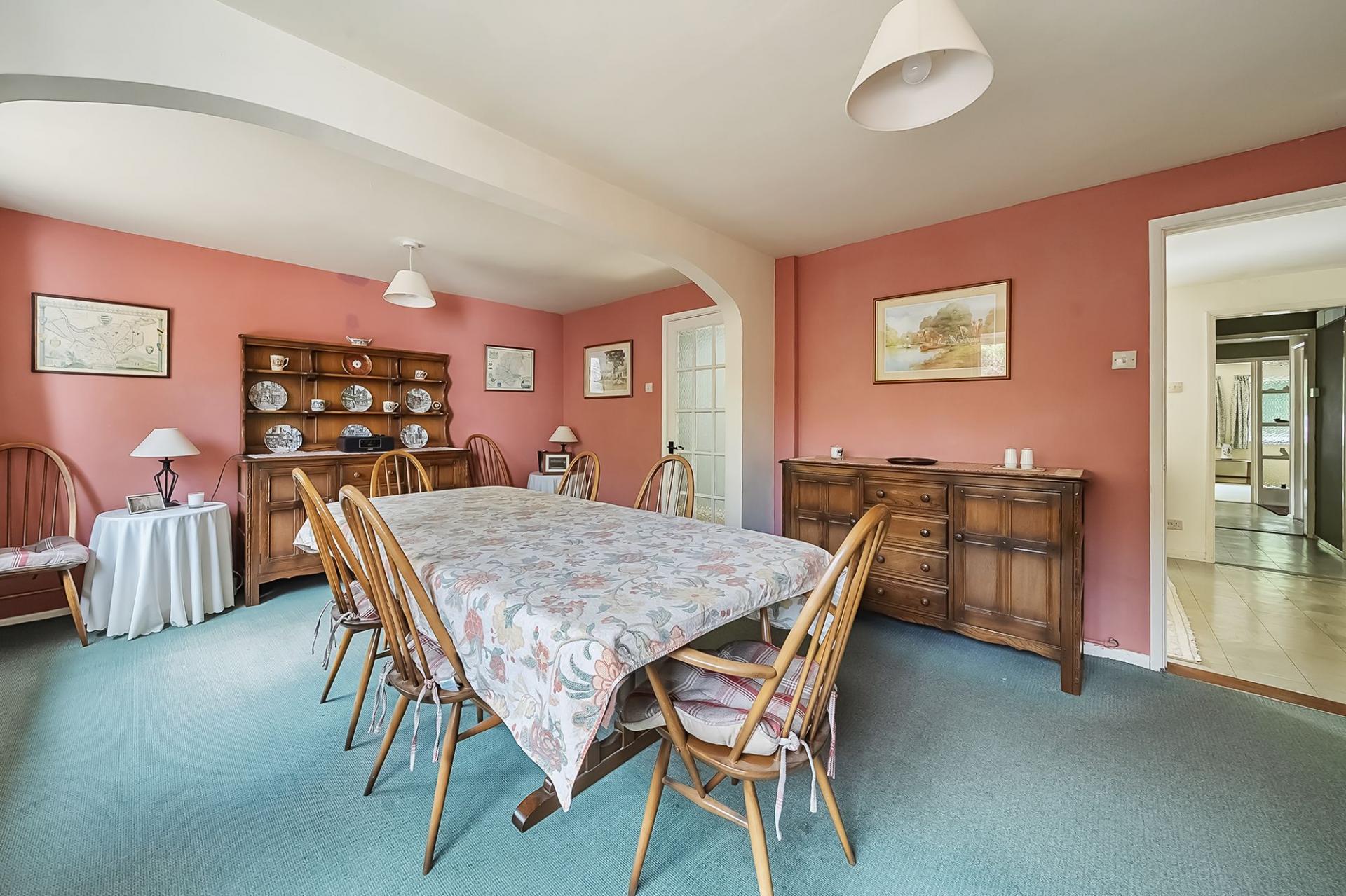 A generously proportioned dining room, ideal for family meals and entertaining guests. The space is filled with natural light from dual aspect windows and features a serving hatch into the kitchen for added convenience. With ample room for a large dining table and additional furniture, this is a welcoming and versatile reception area at the heart of the home.