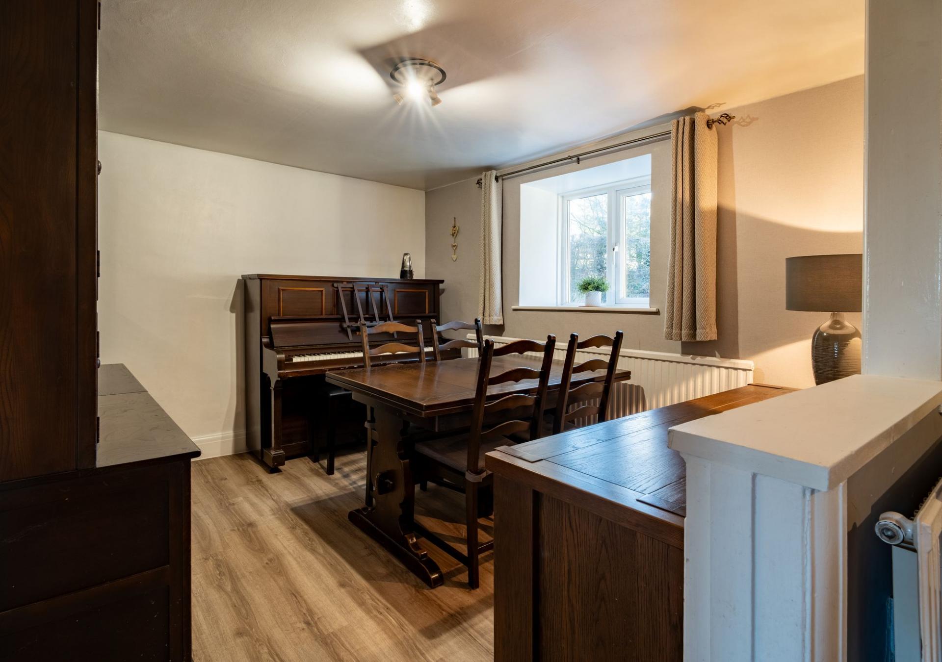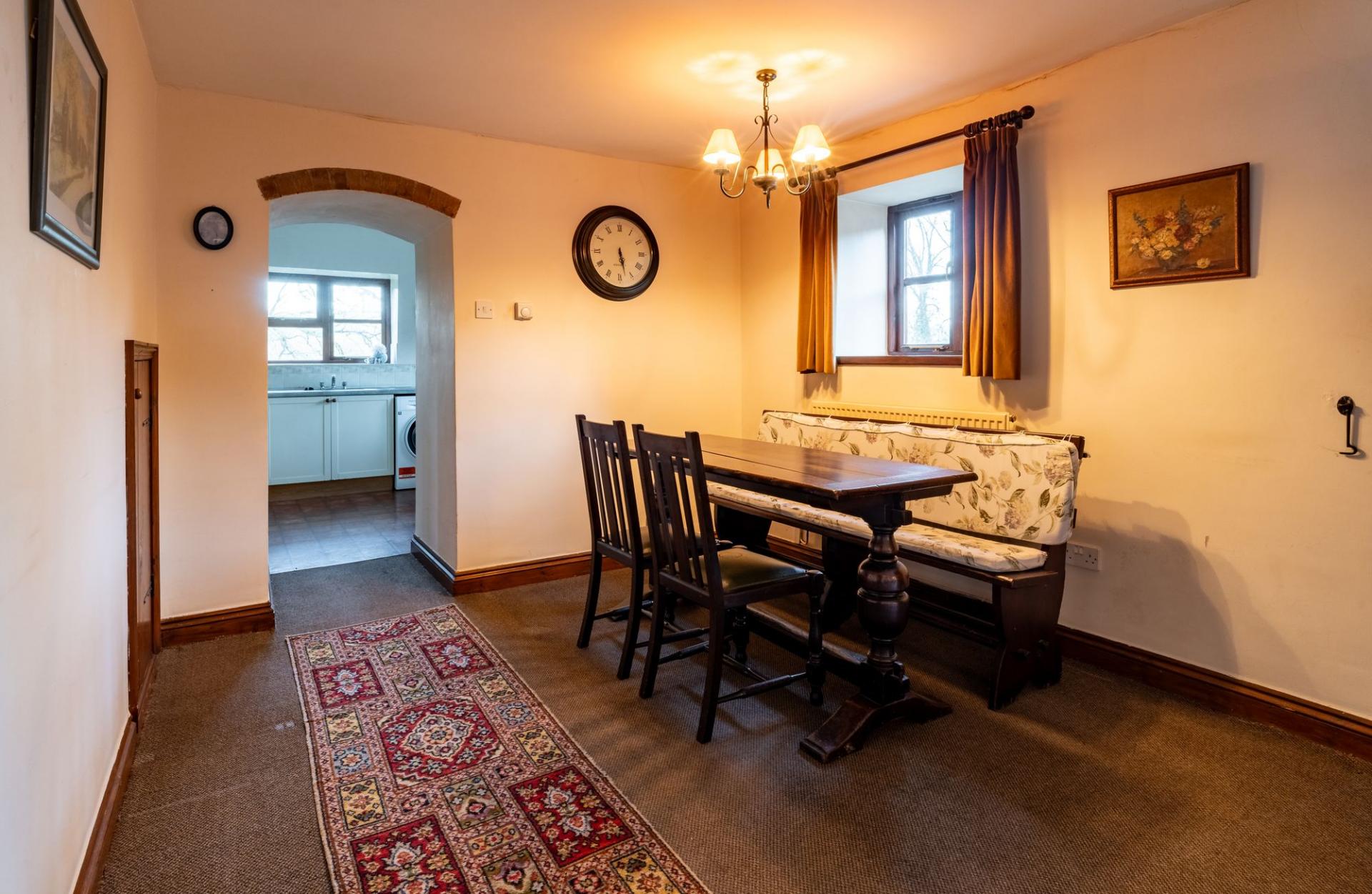 Set within mature grounds, the principal residence is a characterful four-bedroom detached home offering spacious family accommodation. Featuring two welcoming reception rooms and traditional architectural details, it enjoys a peaceful, south-facing position with beautiful countryside views.