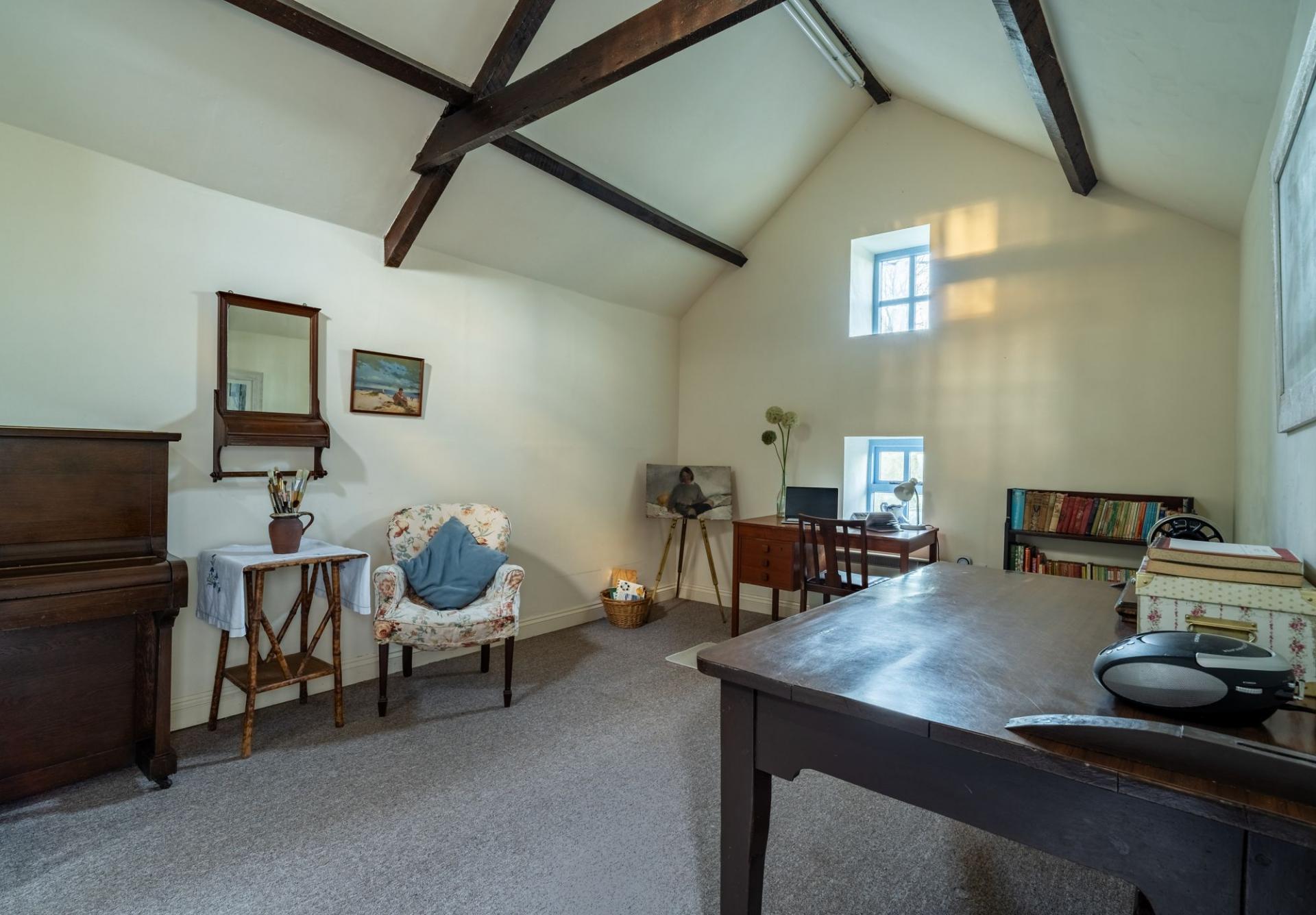 Located opposite the main house, this charming two-bedroom stone barn has been thoughtfully converted, making it ideal for extended family, guests, or potential use as a holiday let (STPP). A separate studio/home office adds versatility, with scope for further expansion, subject to planning consents.