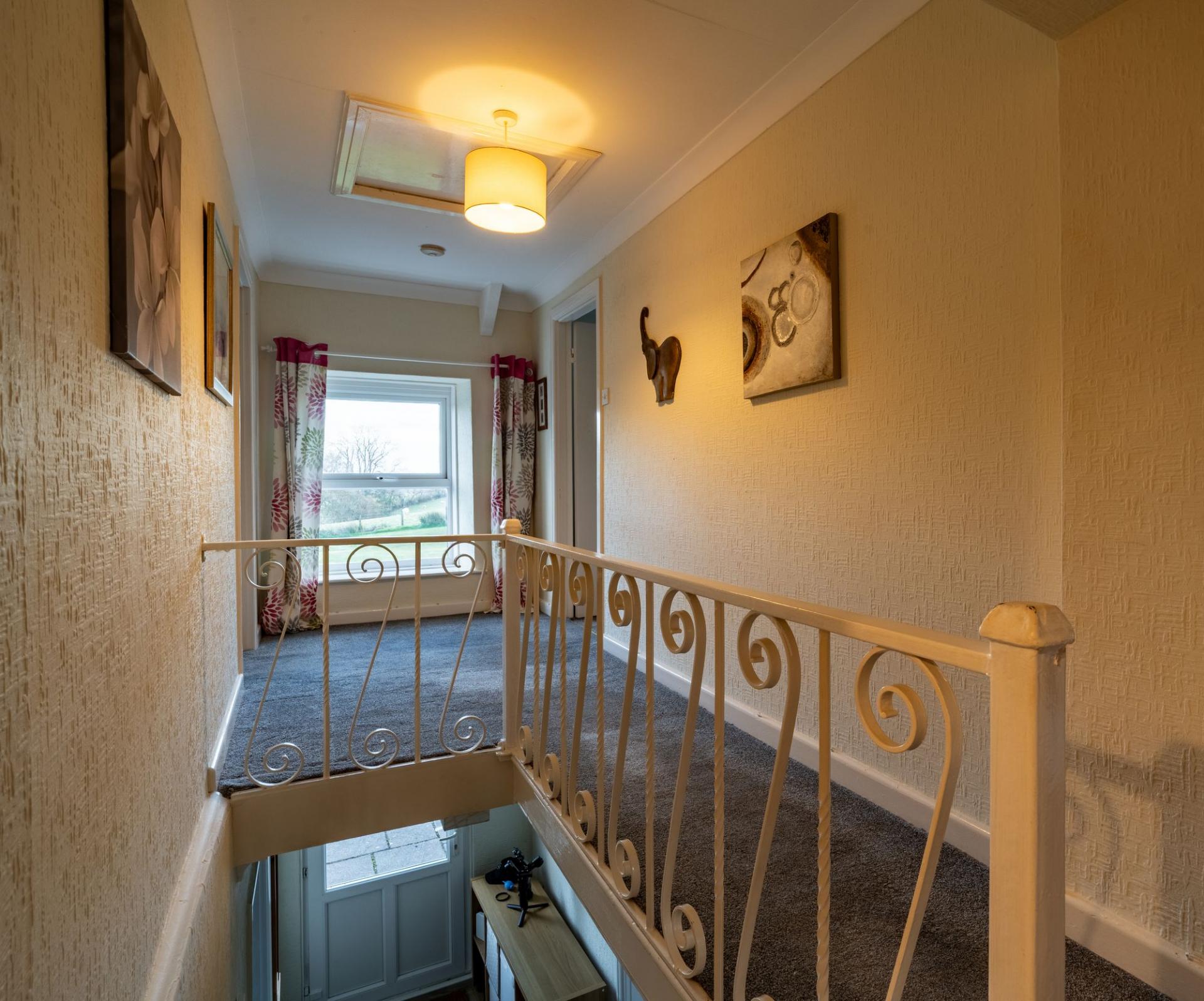 Double glazed window and exposed beams to the stairwell.