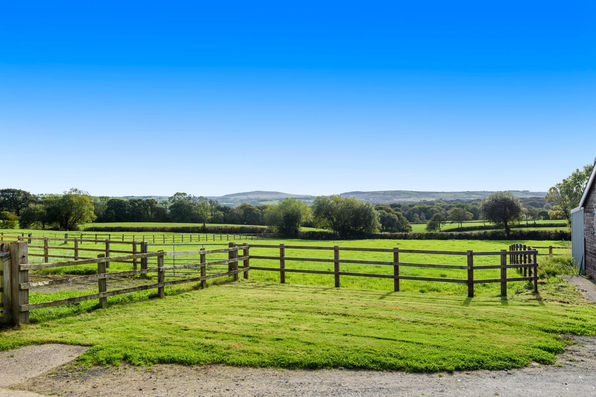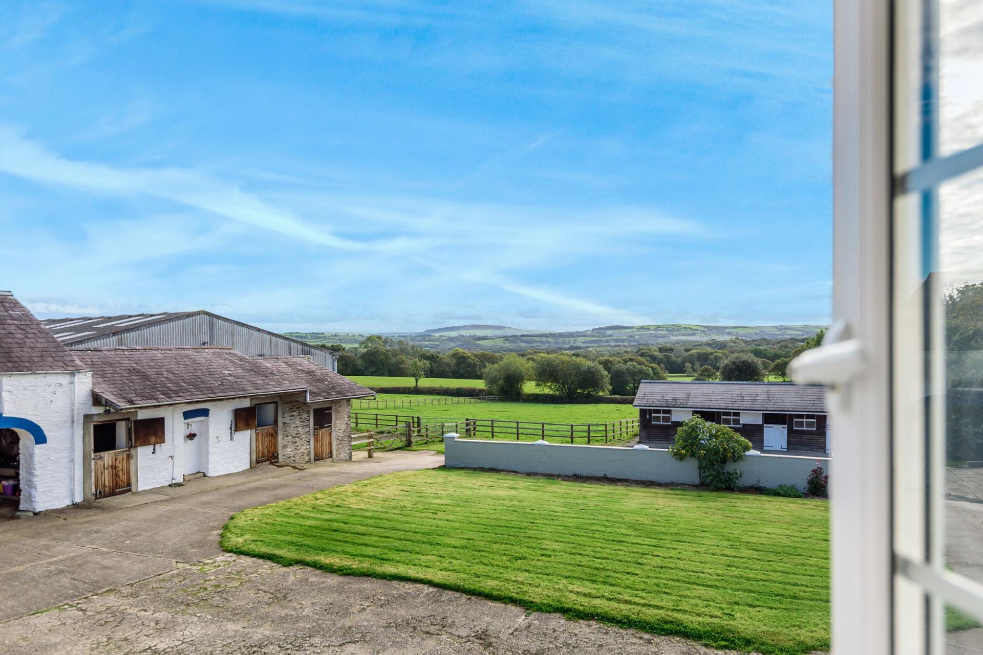 The property’s positioning is not only visually captivating — surrounded by gently undulating land and distant wooded hills — but it also enjoys easy access to the wider West Wales region. For equestrian buyers, this location is a haven, offering 10 large looseboxes, a sand/rubber indoor school and well fenced fields