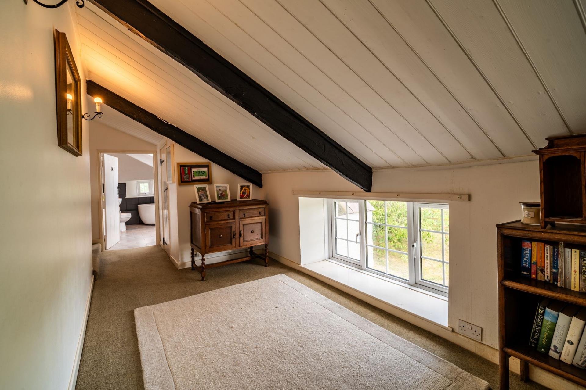 Dual aspect with UPVC windows, beamed ceiling, radiator – perfect as a fourth annexe bedroom or, home office.