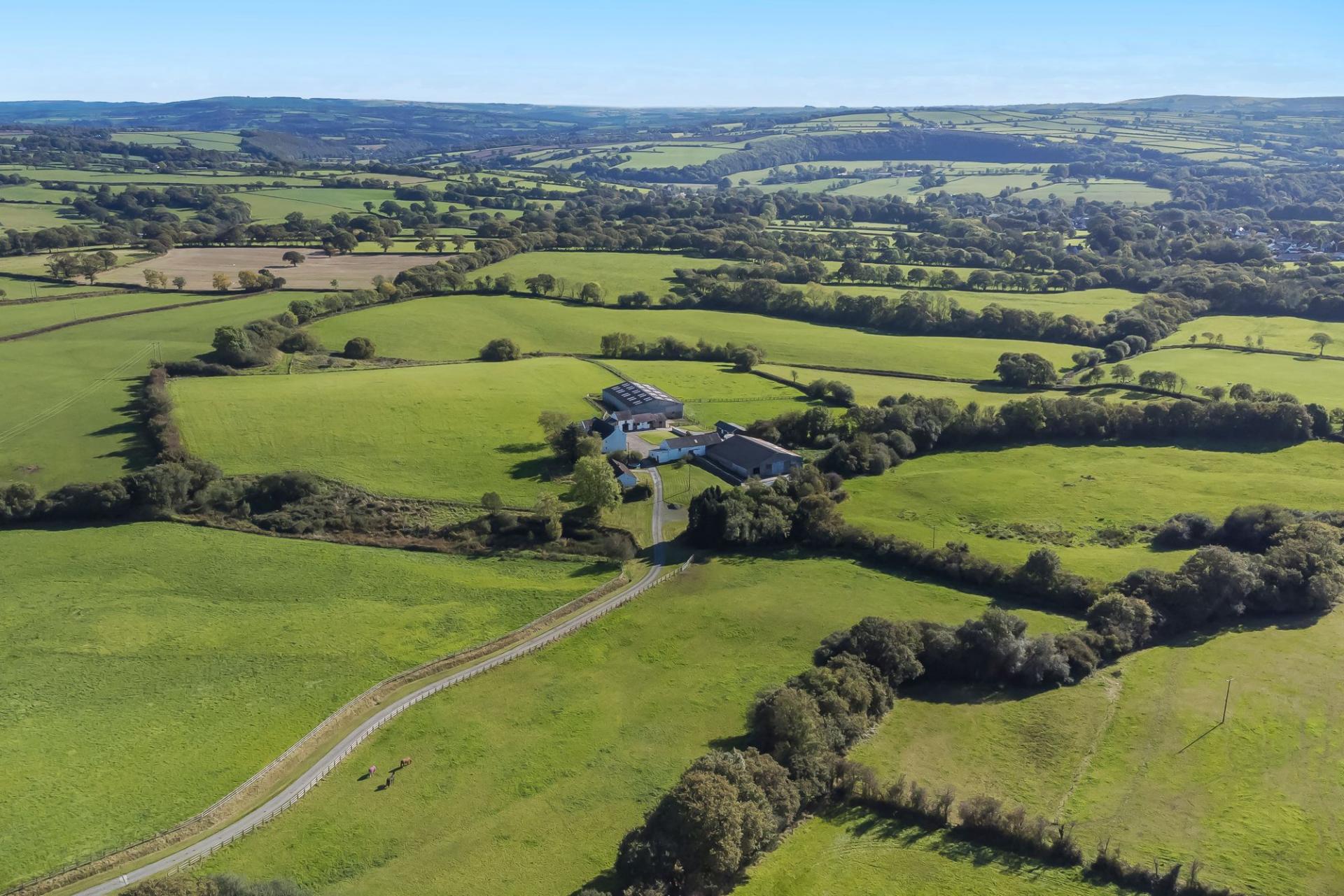 - 33.5 acres separated into 7 fields, all with mains water troughs and predominantly hedge/post and rail fencing. Currently used for grazing and 1/2 cuts of hay/haylage each year. (grazing, woodland, hay cut etc.)