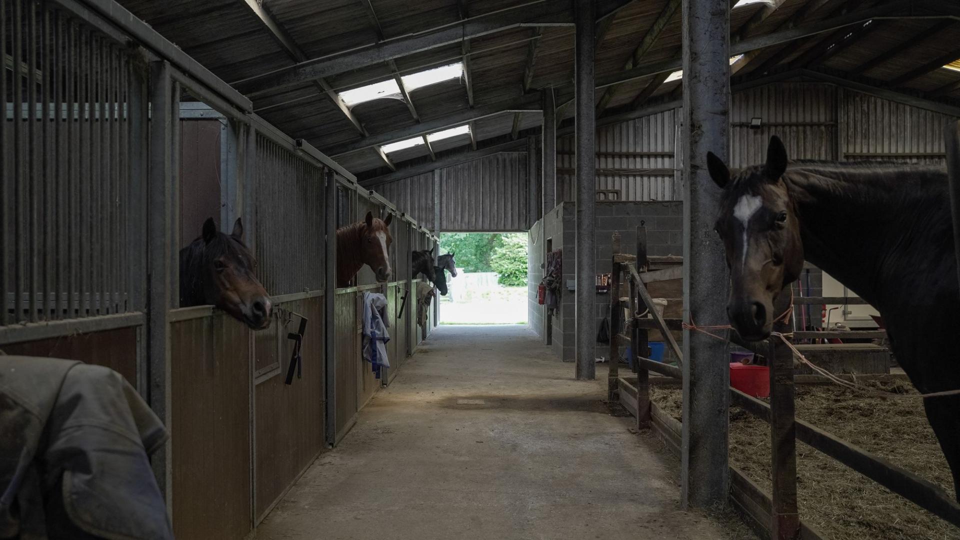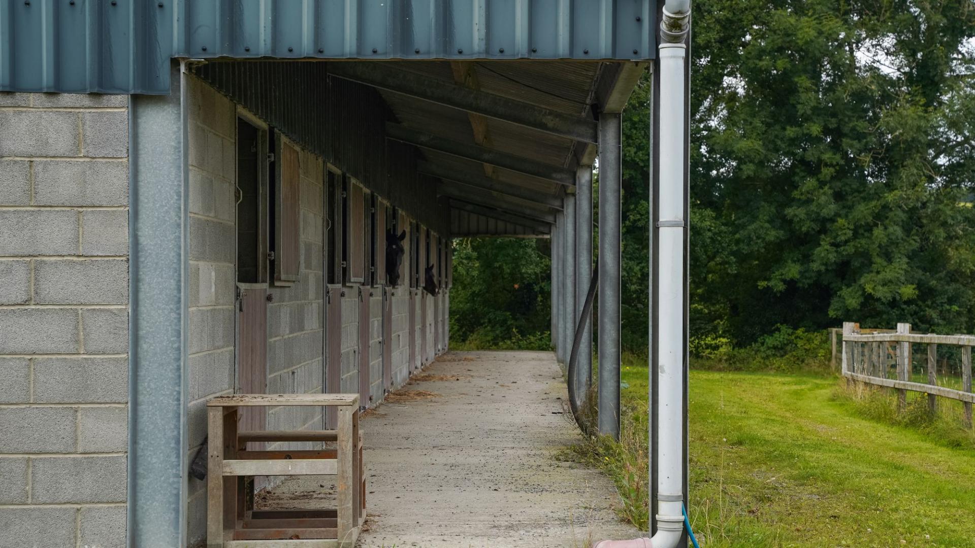 Barn 100ft x 100ft, 8 x Loddon stables down one side with drinkers and access both into the building and out to an external , covered walkway.