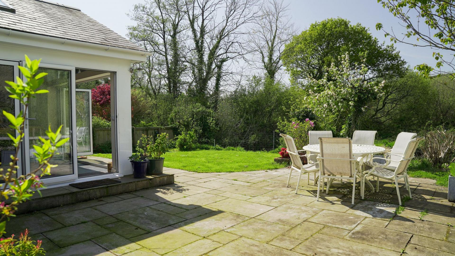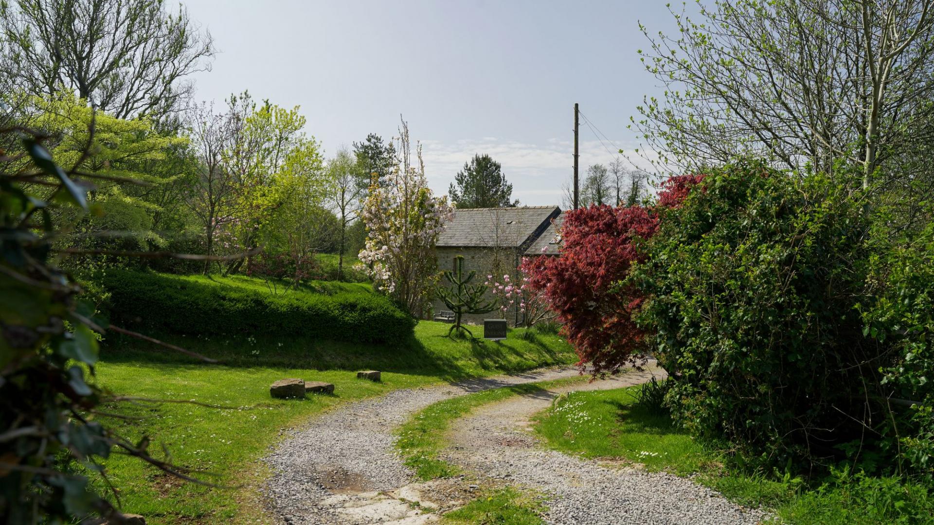 A shared driveway leads to both the main residence and the two holiday cottages, with private parking and a double carport featuring an EV charging point.