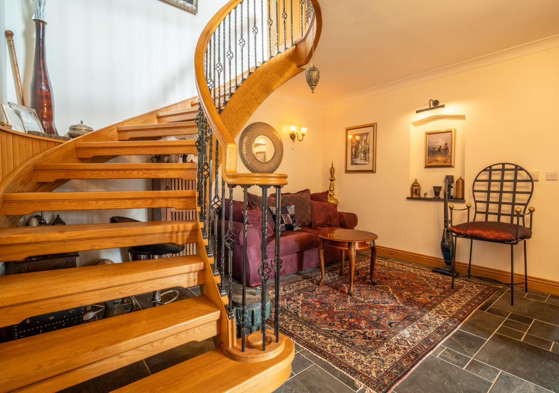 Handmade oak staircase, slate-tiled flooring, coved ceiling.