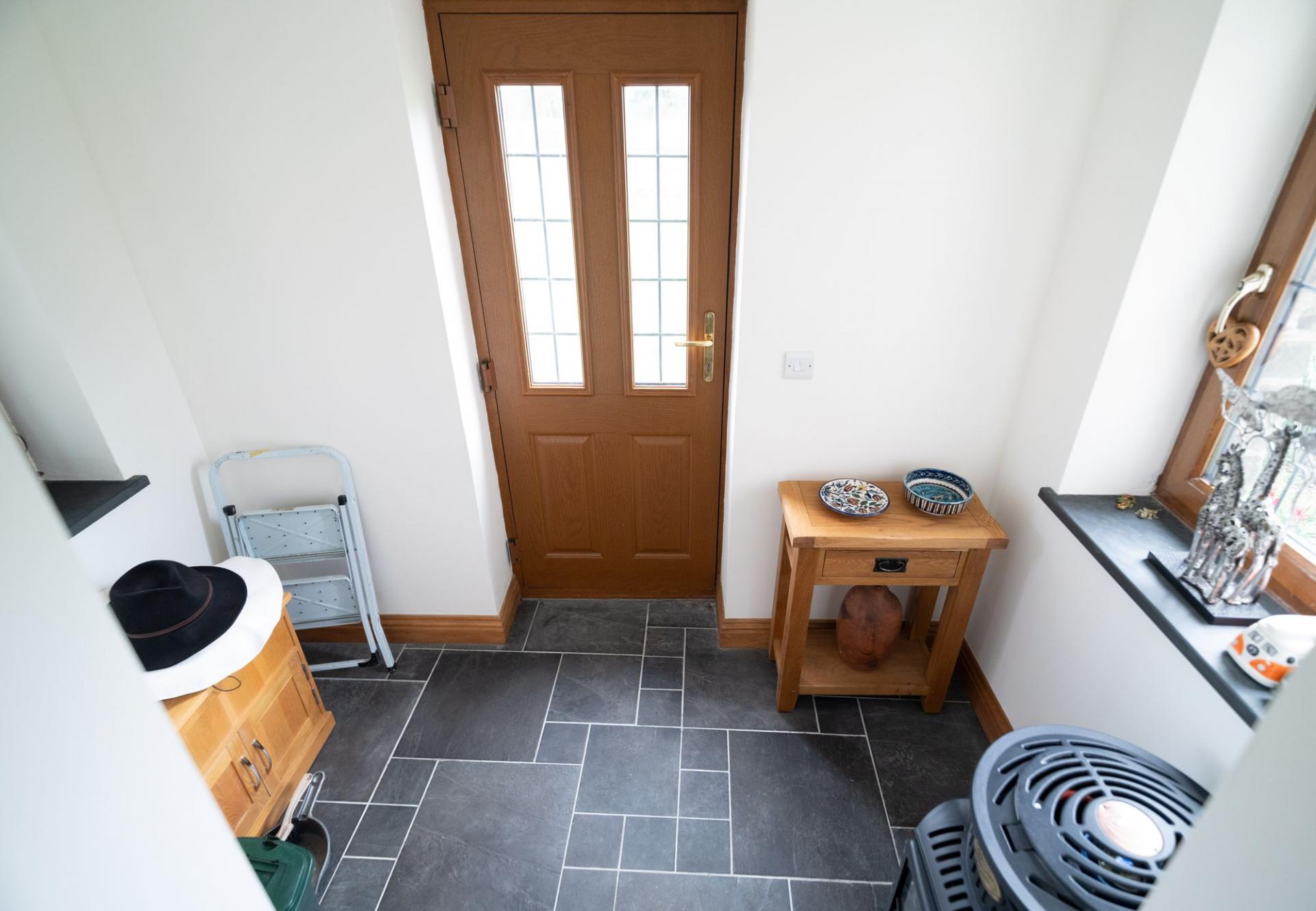 Triple aspect with slate-tiled flooring and UPVC woodgrain-effect double-glazed windows.