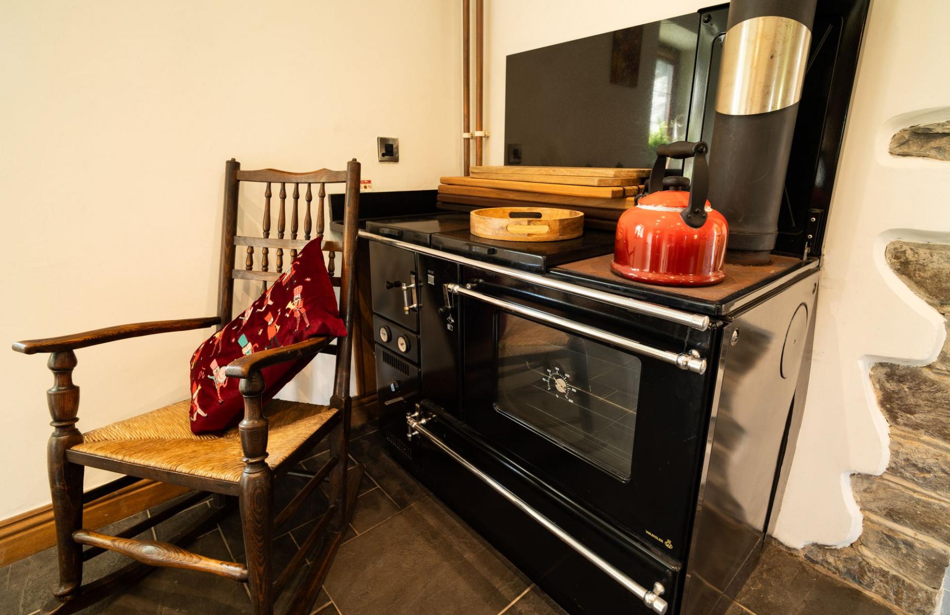 Dual aspect, light oak units, polished work surfaces, range cooker, slate floor.