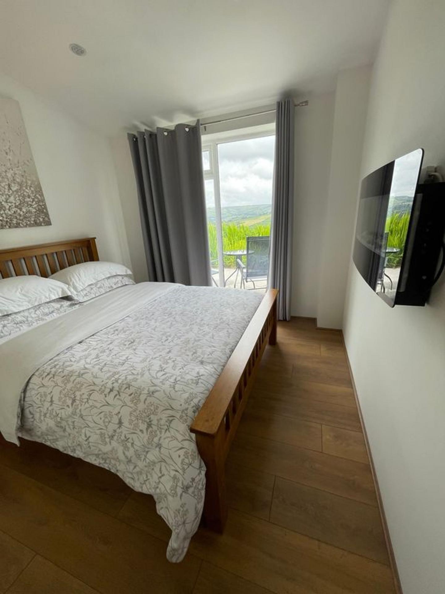 A generous double bedroom with views over vine-laced slopes and open countryside