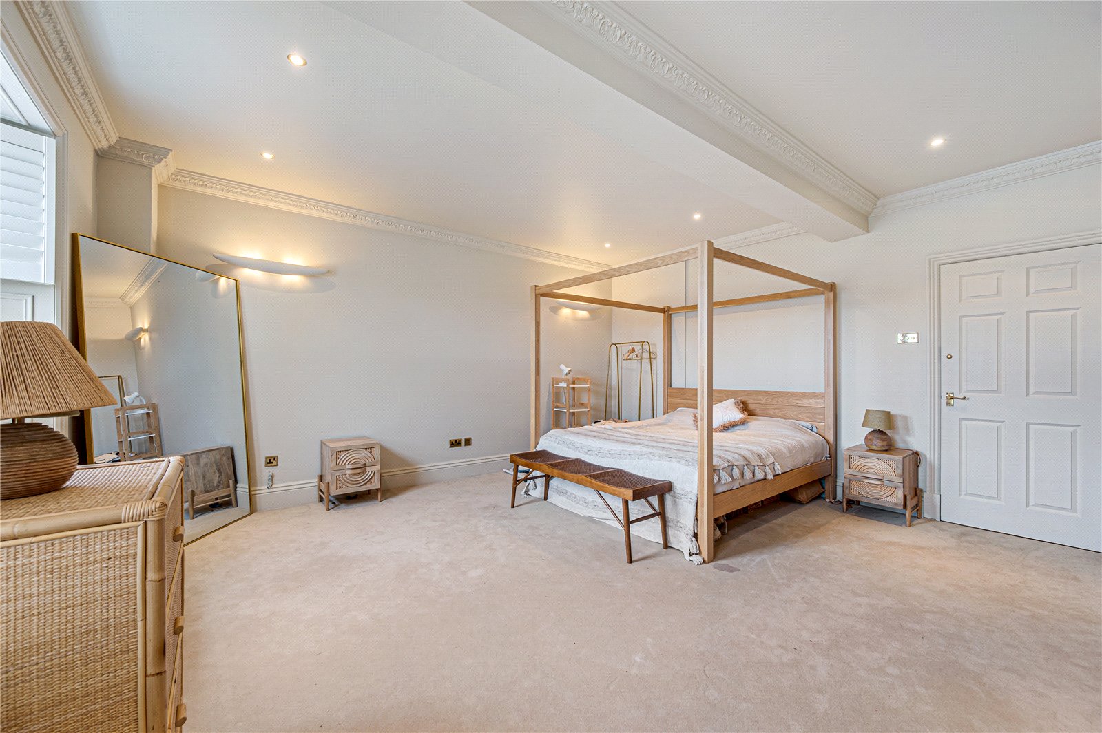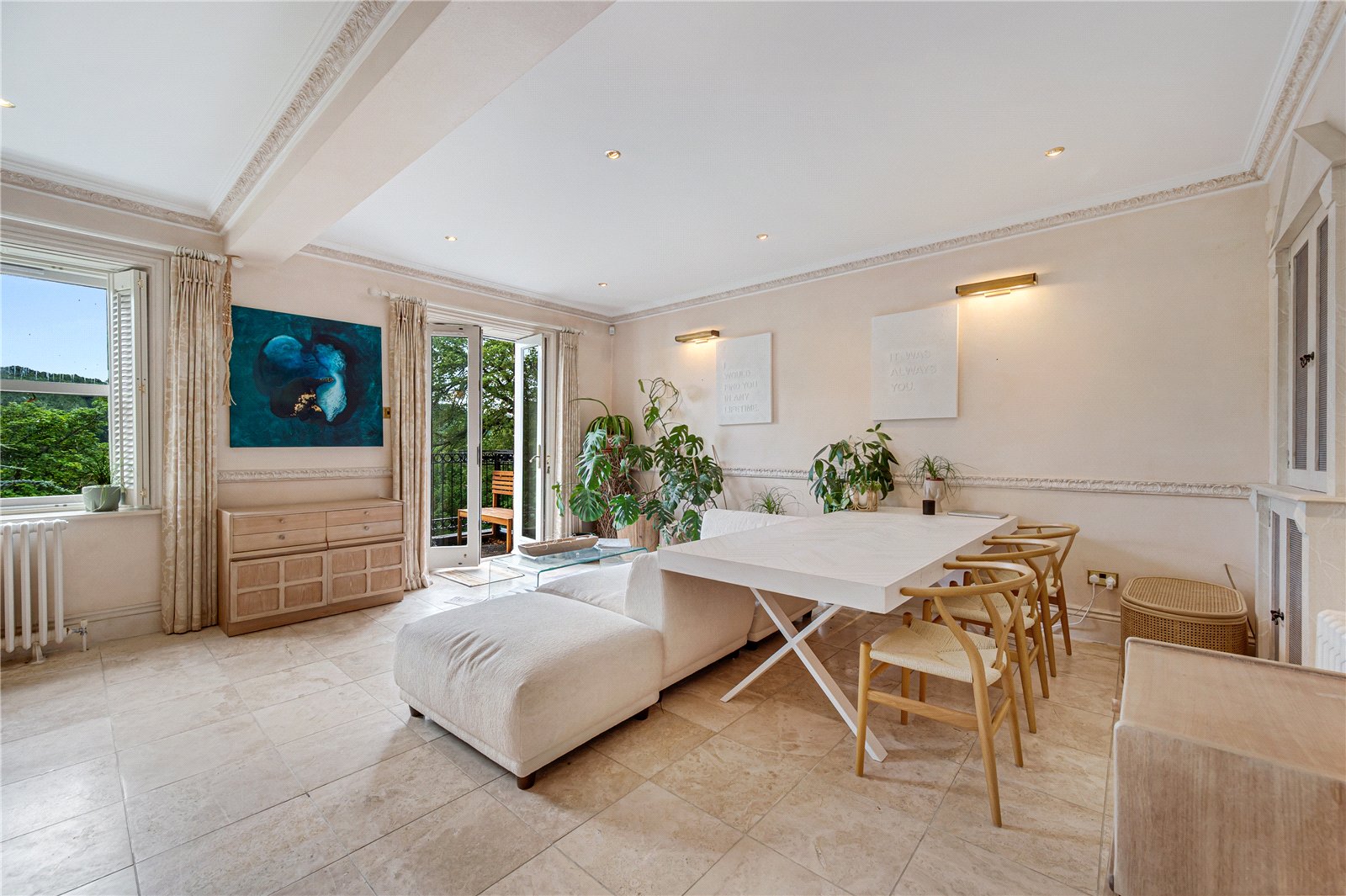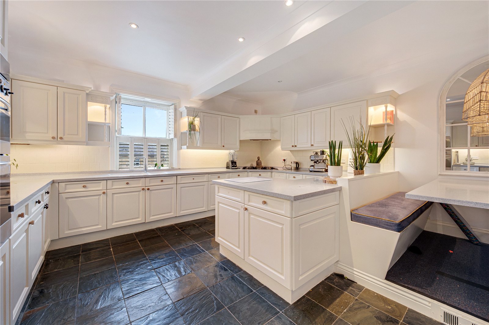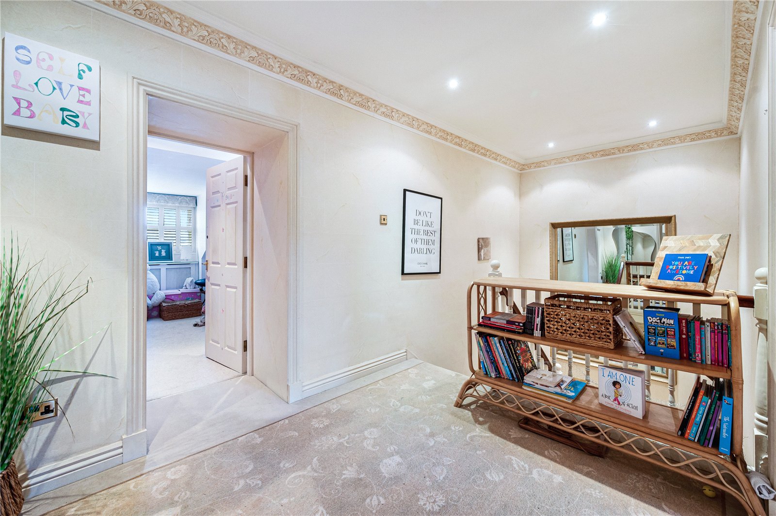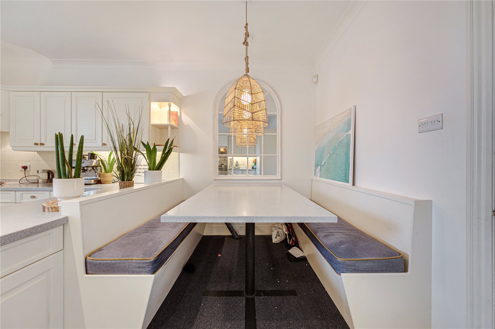 The first floor welcomes you with a generous entrance hall featuring a guest W.C. At its heart lies a spacious family kitchen, complete with built-in appliances and a charming dining area with integrated benches—ideal for everyday meals or entertaining. The expansive open-plan living room is a true highlight, boasting elegant finishes, marble tiled flooring, an abundance of natural light, and access to a private south-facing balcony overlooking the tranquil river. A versatile additional reception room, currently used as a bedroom, offers flexible living options to suit your lifestyle—whether as a home office, guest room, or snug. Upstairs, there is a principal bedroom, with fitted wardrobes and its own en-suite bathroom with freestanding bath and separate shower. A further two bedrooms are both good-sized doubles, with built in storage and with one benefitting from an en-suite shower room. Completing the upstairs is a main family shower-room.