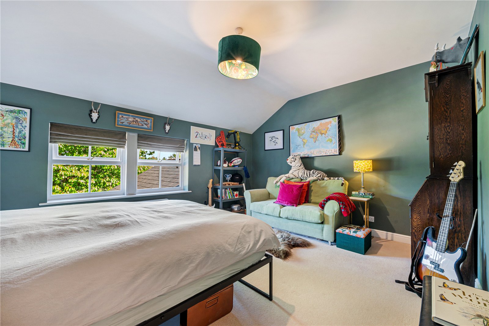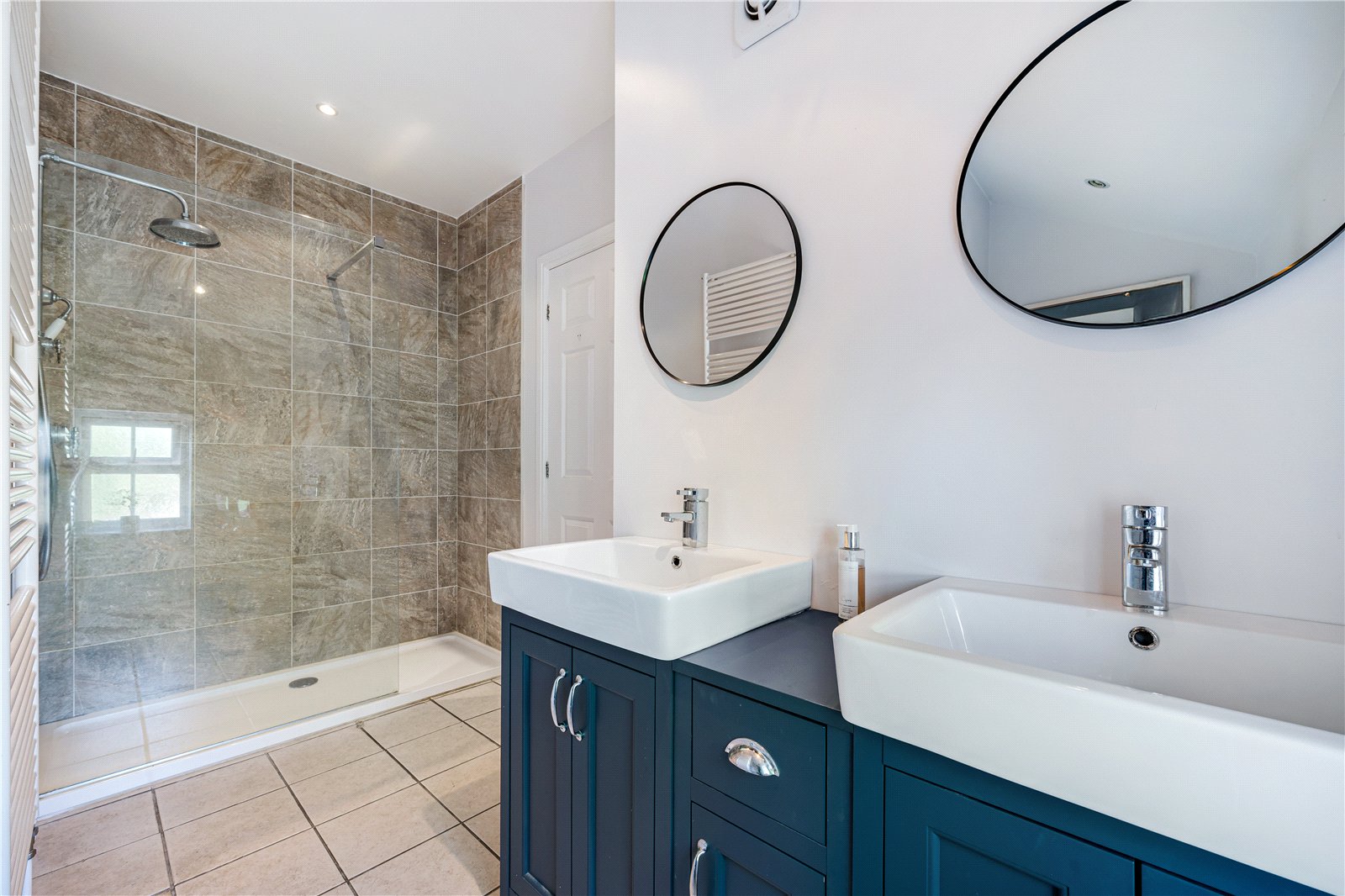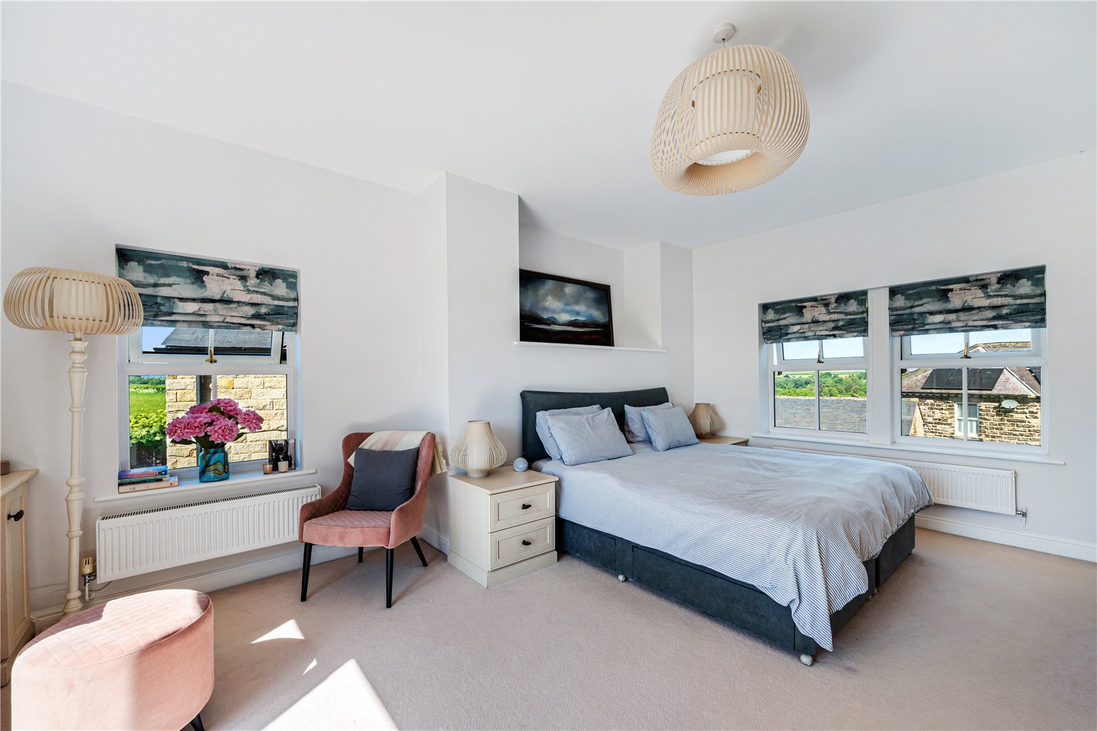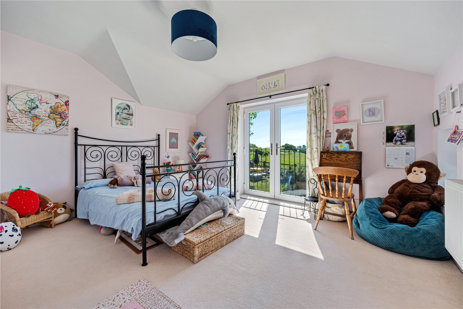 Upstairs, the main bedroom suite is a true sanctuary, complete with built-in furniture, a Juliet balcony overlooking the countryside, and a modern en-suite shower room. Three further well-proportioned bedrooms are served by a stylish family bathroom, perfect for a growing household.