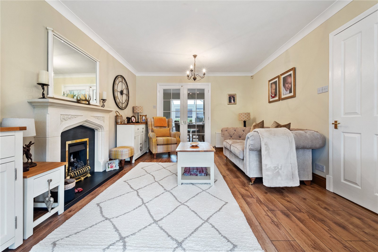 As you step inside this wonderful home, you are welcomed by a spacious entrance hall with a convenient guest W.C. The living room, featuring a charming bay window, offers a calm and inviting space, with direct access through to the formal dining room. At the heart of the home is the stunning open-plan kitchen, complete with built-in appliances, a show-stopping island, underfloor heating, and sleek bi-fold doors that open out to the rear garden—perfect for indoor-outdoor living. Flowing seamlessly from the kitchen is a versatile family room, ideal for entertaining, relaxing, or as a playroom. The formal dining room provides ample space for family gatherings and special occasions and leads into the light-filled conservatory which enjoys air conditioning and peaceful views over the garden.
