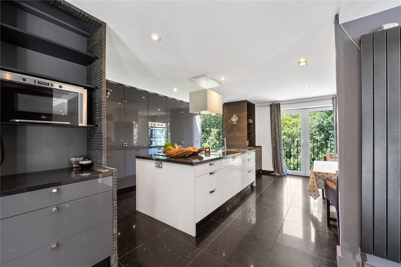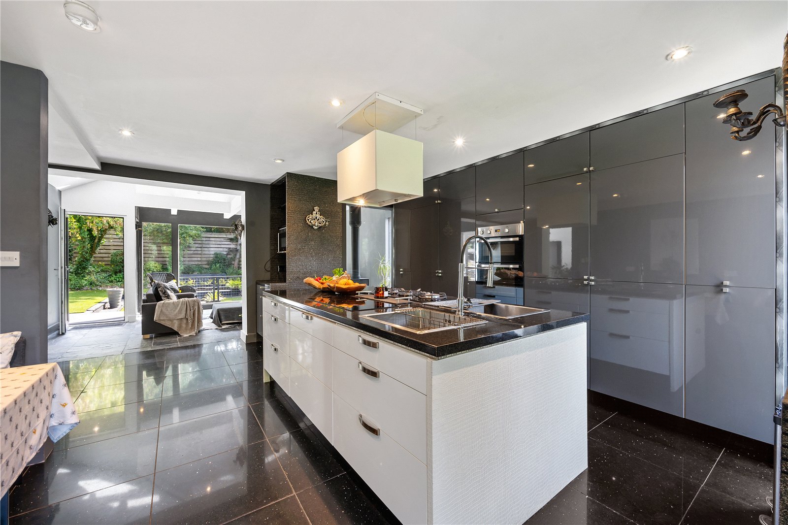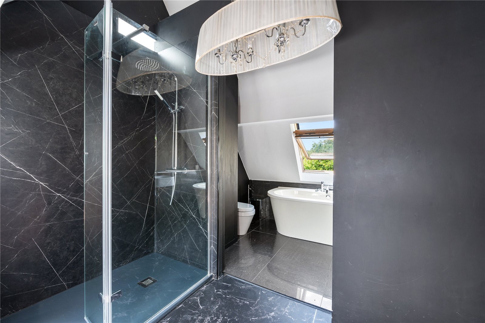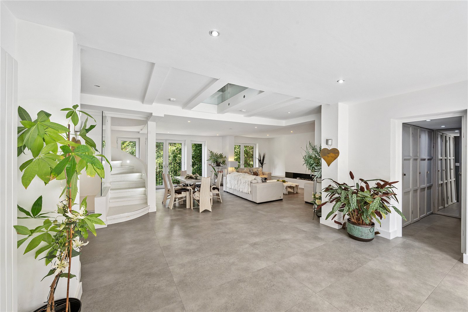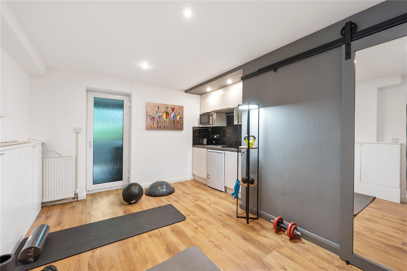 The lower ground floor offers exceptional flexibility, with a self-contained guest suite that includes its own entrance, en-suite shower room, and kitchenette—ideal for visiting guests, older relatives, or a live-in nanny. There are three further spacious double bedrooms on this level, one with a modern en-suite shower room. A contemporary house bathroom serves the remaining two bedrooms. A fantastic gym/games room completes this floor, also benefiting from its own kitchenette and separate side door, making it ideal for a variety of uses.