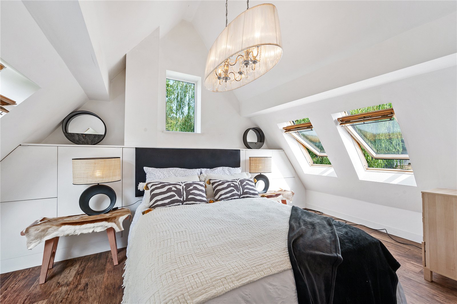 The top floor is dedicated to a luxurious principal suite, comprising a double bedroom with Velux windows that fill the room with natural light. The suite also includes a stylish en-suite bathroom with a walk-in shower, bath, W.C., and wash hand basin. There is a versatile additional room, ideal as a dressing room or home office, complete with its own Juliet balcony.